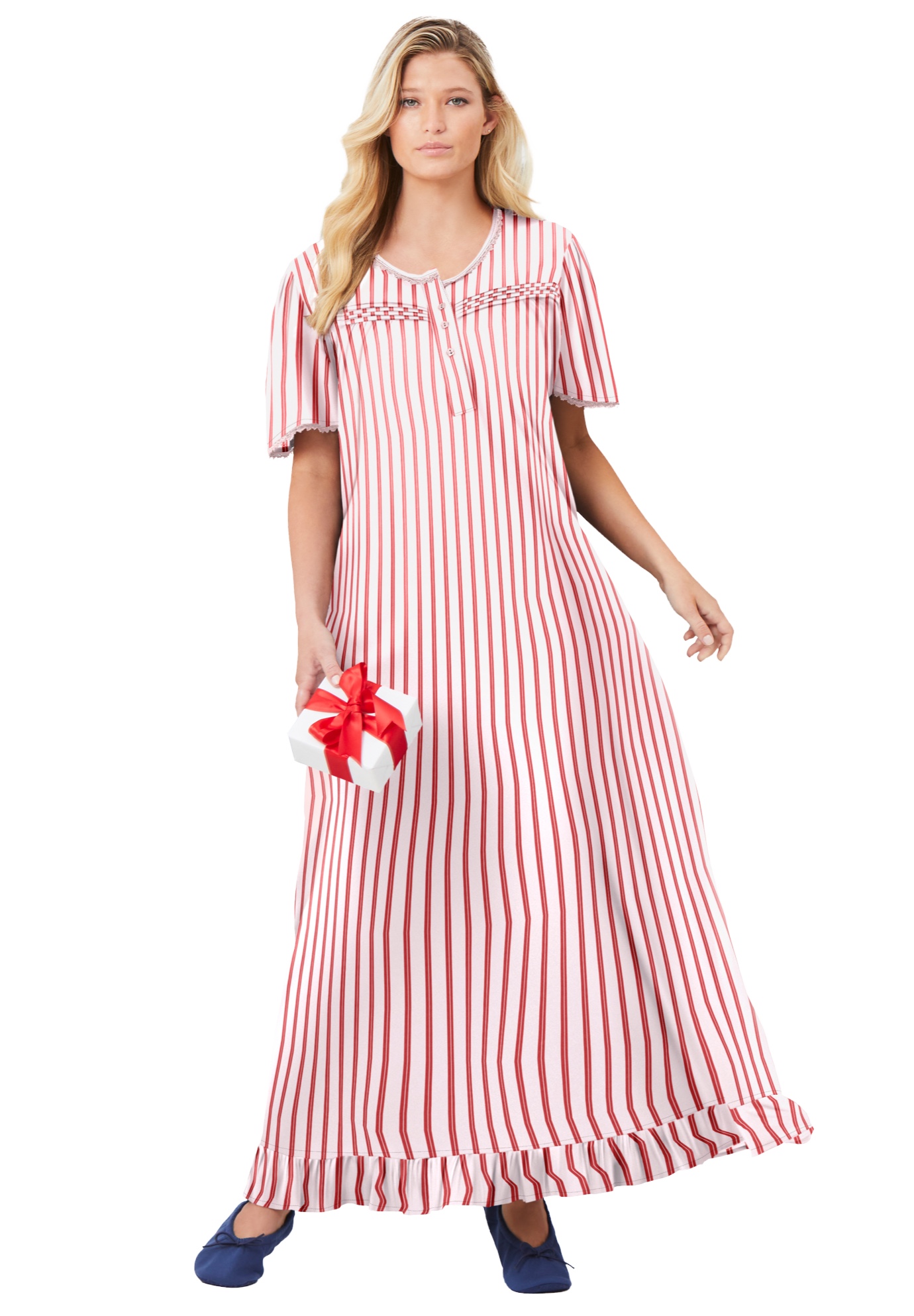 Plus Size Women's Long Floral Print Cotton Gown by Dreams & Co. in Red White Stripe (Size 3X) Pajamas