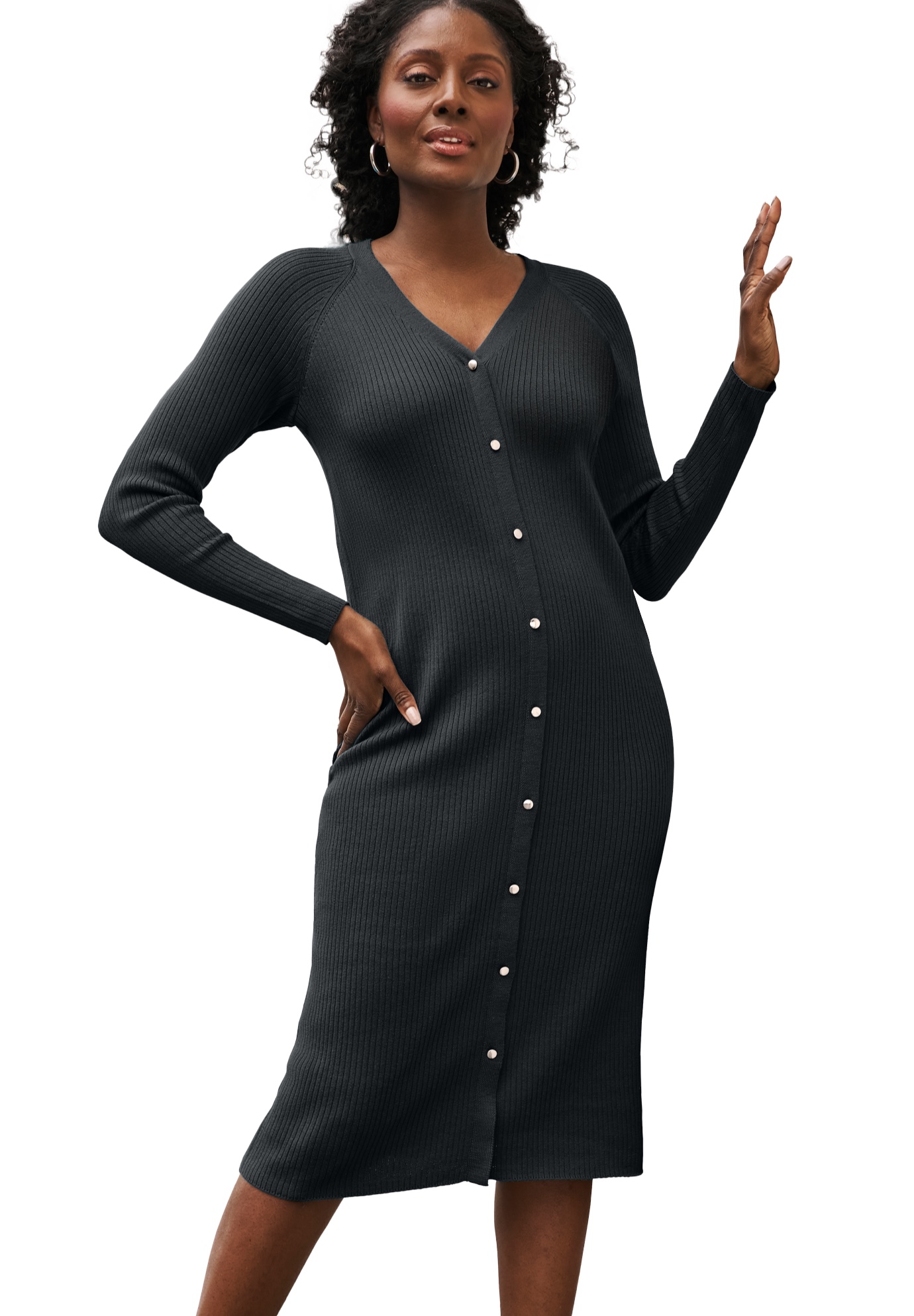 Plus Size Women's Button Front Midi Dress by Jessica London in Black (Size 2X)
