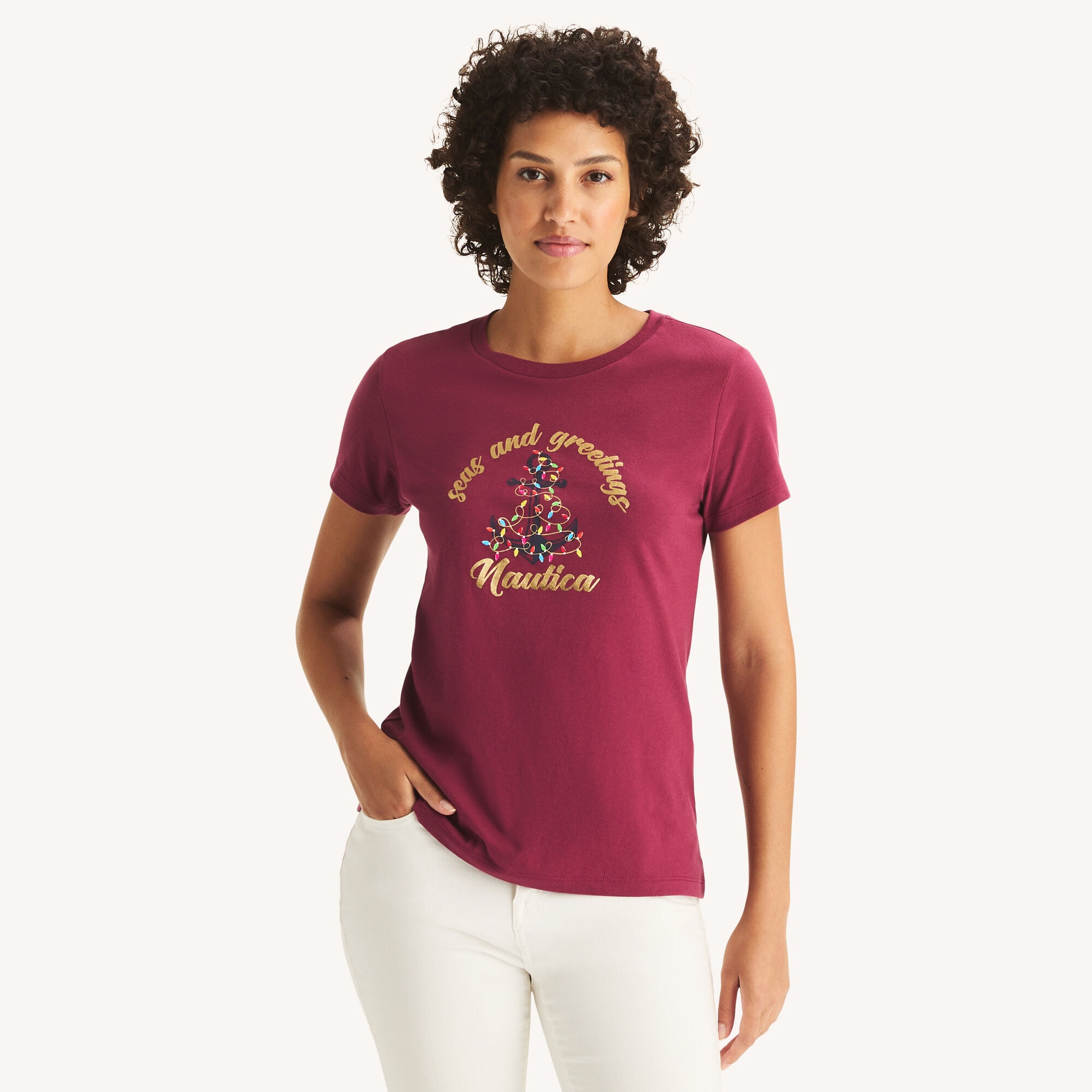 Nautica Women's Sea & Greetings Foil Graphic T-Shirt 670 (Fancytail Fuschia), S