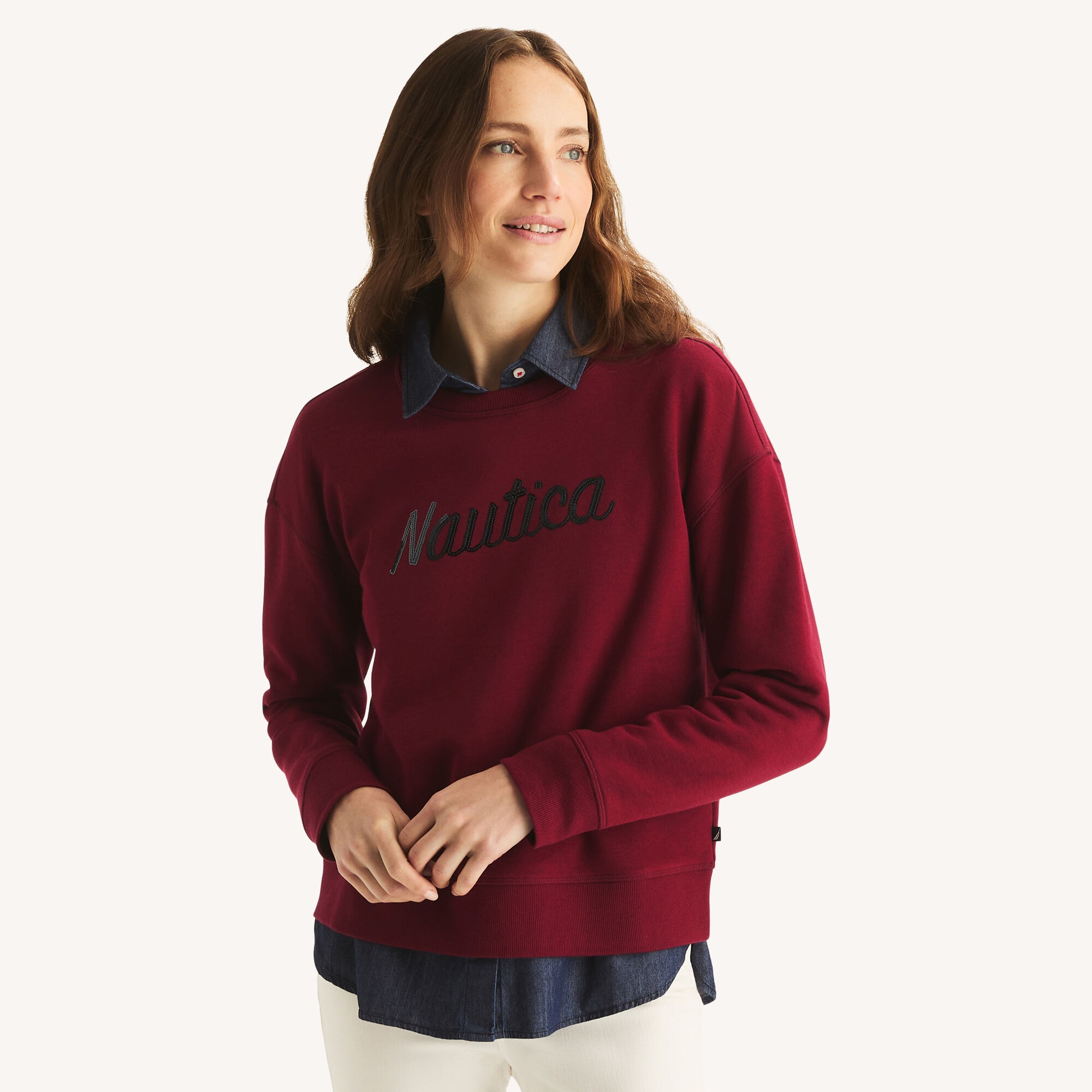 Nautica Women's Fleece Logo Crewneck Sweatshirt 697 (Rogue Red), L