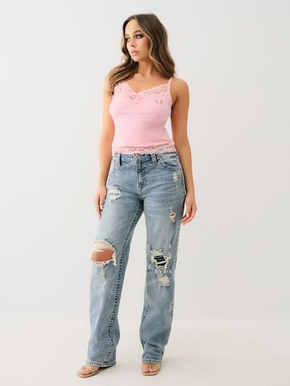 Sara High Rise Distressed Straight Jean - Blue - True Religion Jeans
