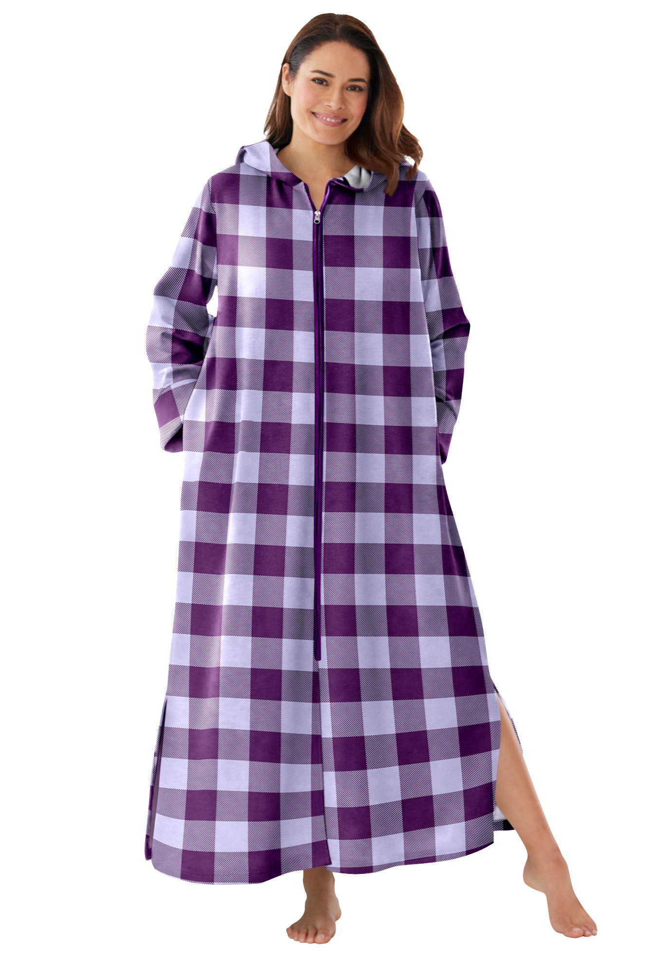 Plus Size Women's Long Hooded Fleece Sweatshirt Robe by Dreams & Co. in Lilac Grape Buffalo (Size 1X)