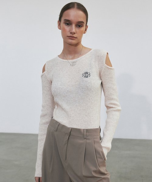 nicknicole RUNWAY SHOULDER RIBBED KNIT_OATMEAL