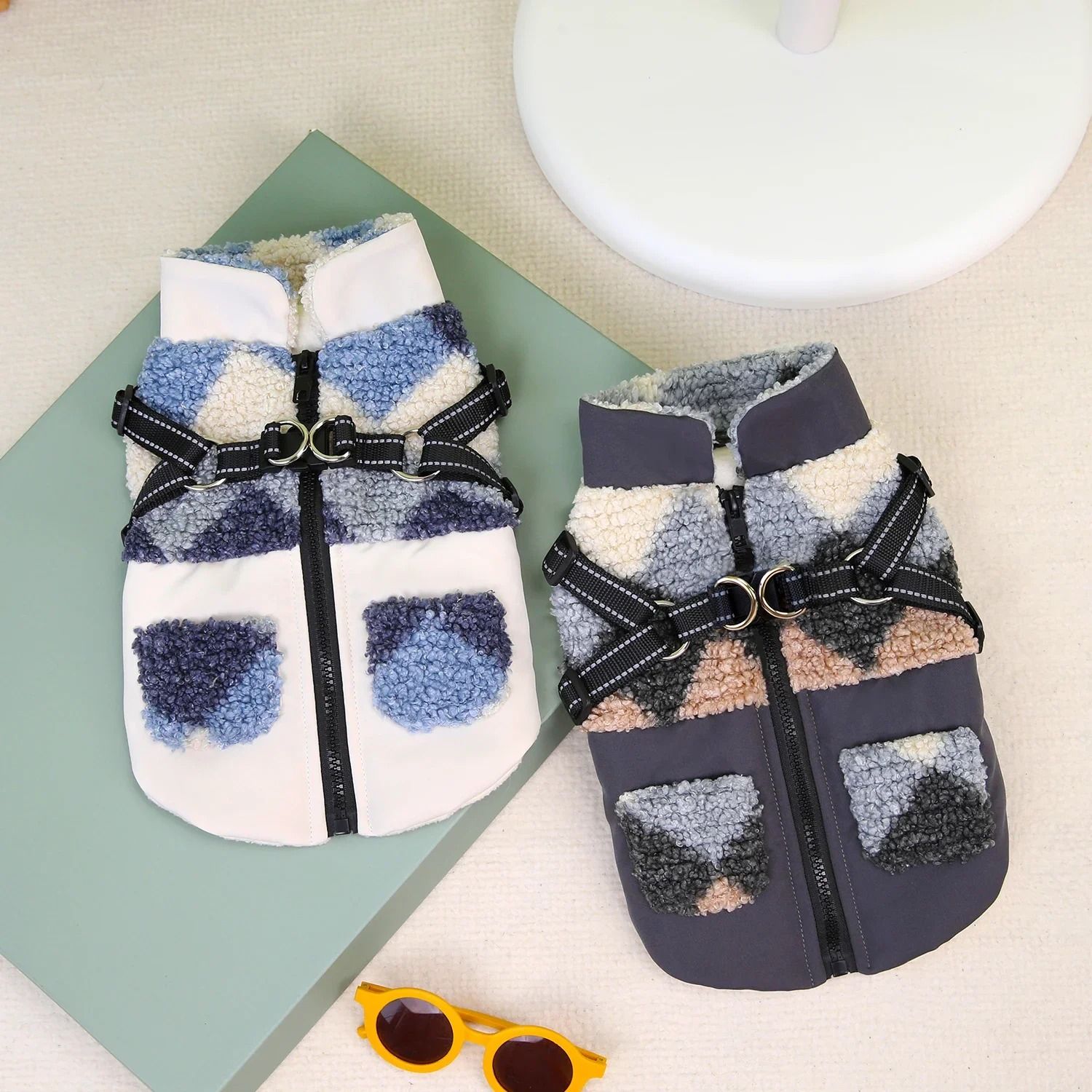 Warm Winter Dog Jacket With Built in Harness For Small And Medium Pets dark Grey m
