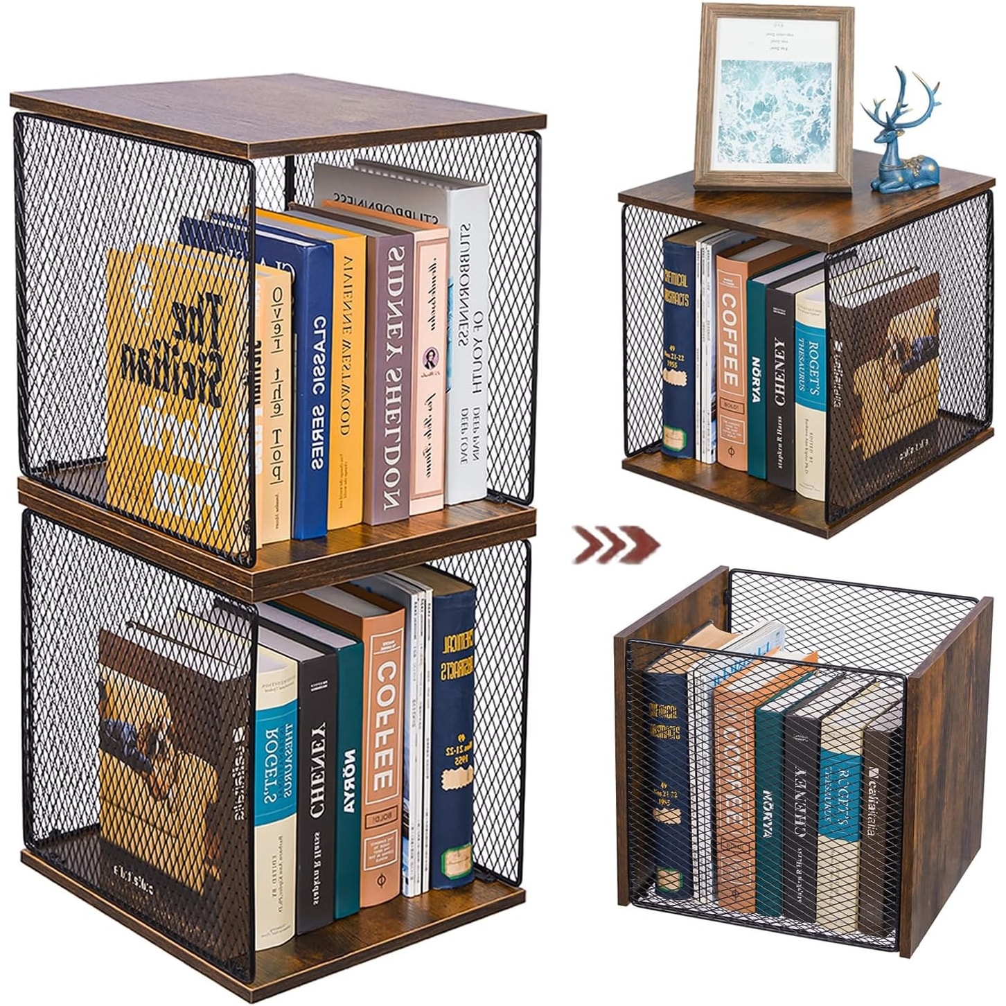 DIY Stackable Cube Storage Organizer for Kids Bedroom, Living Room, Black Brown Wooden Bookshelf