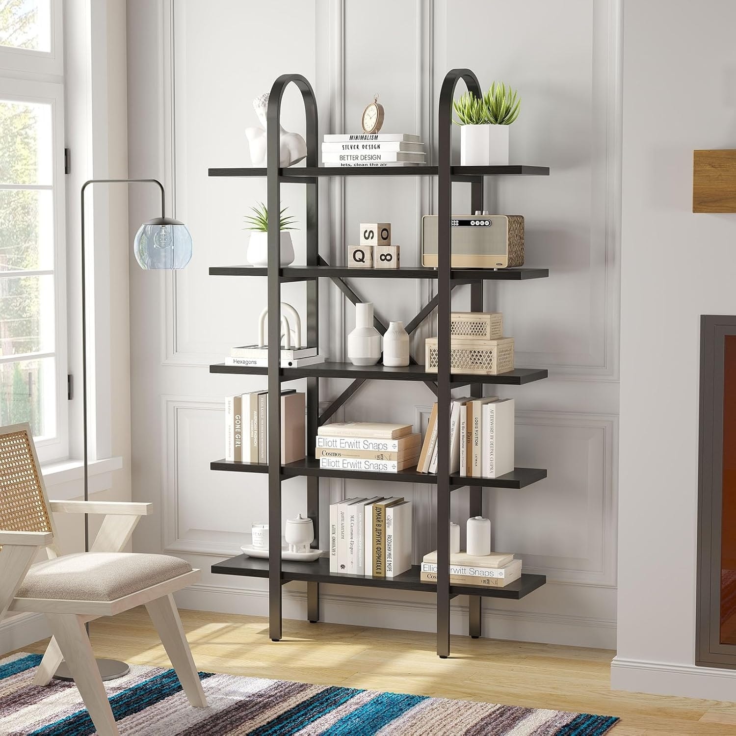 Industrial 5-Tier Open Book Shelves with Metal Frame, 72 Inch Tall Freestanding Heavy Duty Display Rack
