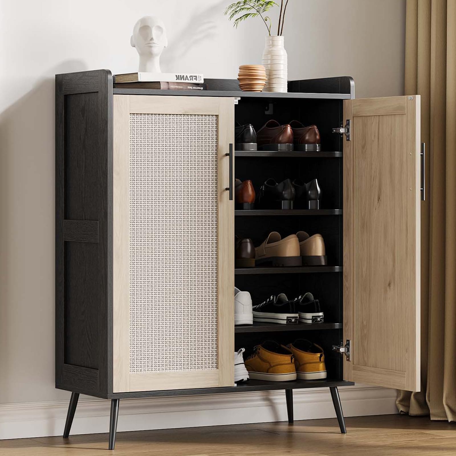 Rattan Shoe Cabinet, 5-Tier Freestanding Shoe Storage Organizer with Adjustable Shelves for Entryway