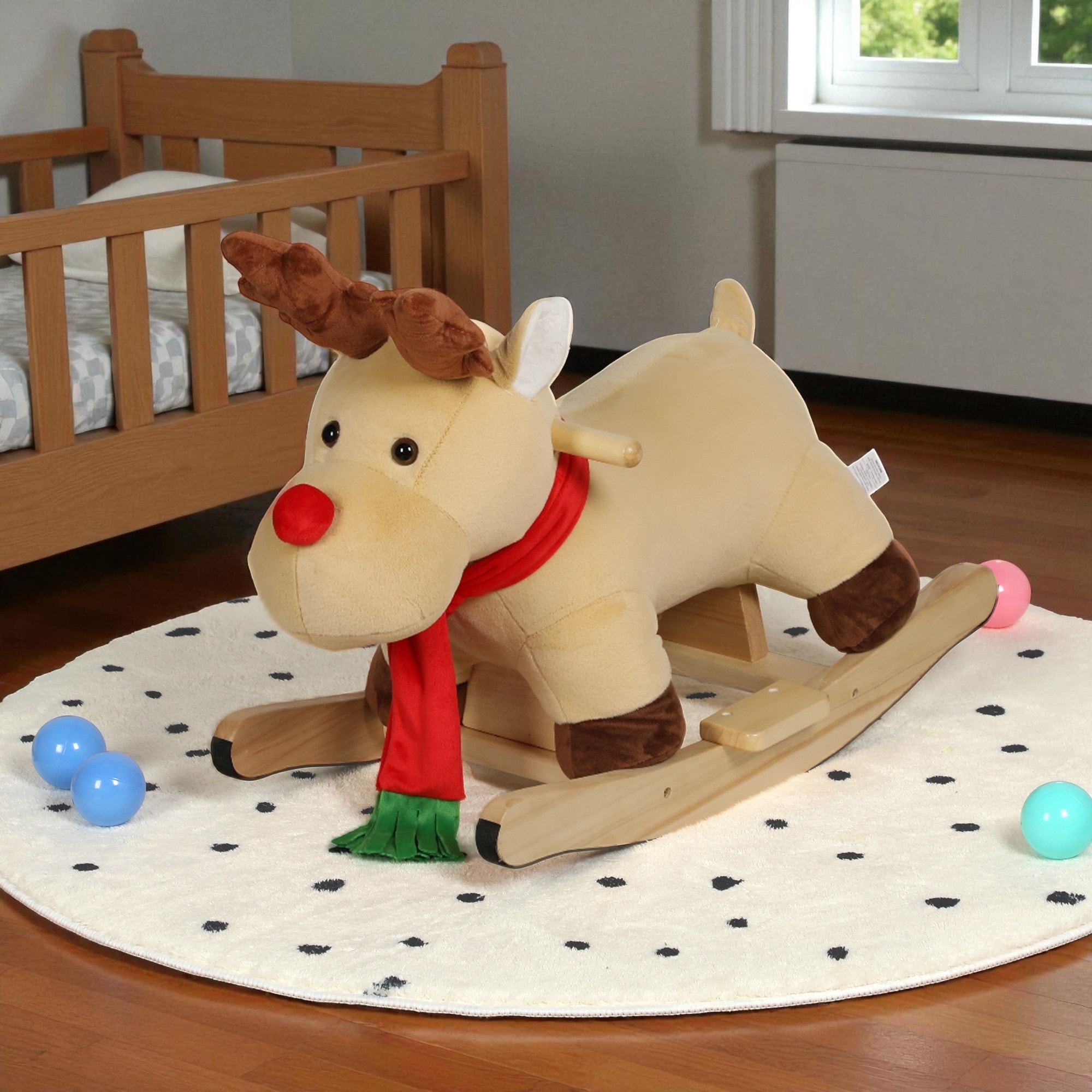 Kids Ride On Rocking Horse Plush Toy with Songs Hand Puppets Safety Belt Soft Fabric for Ages 1-3,Birthday and Holiday Gift