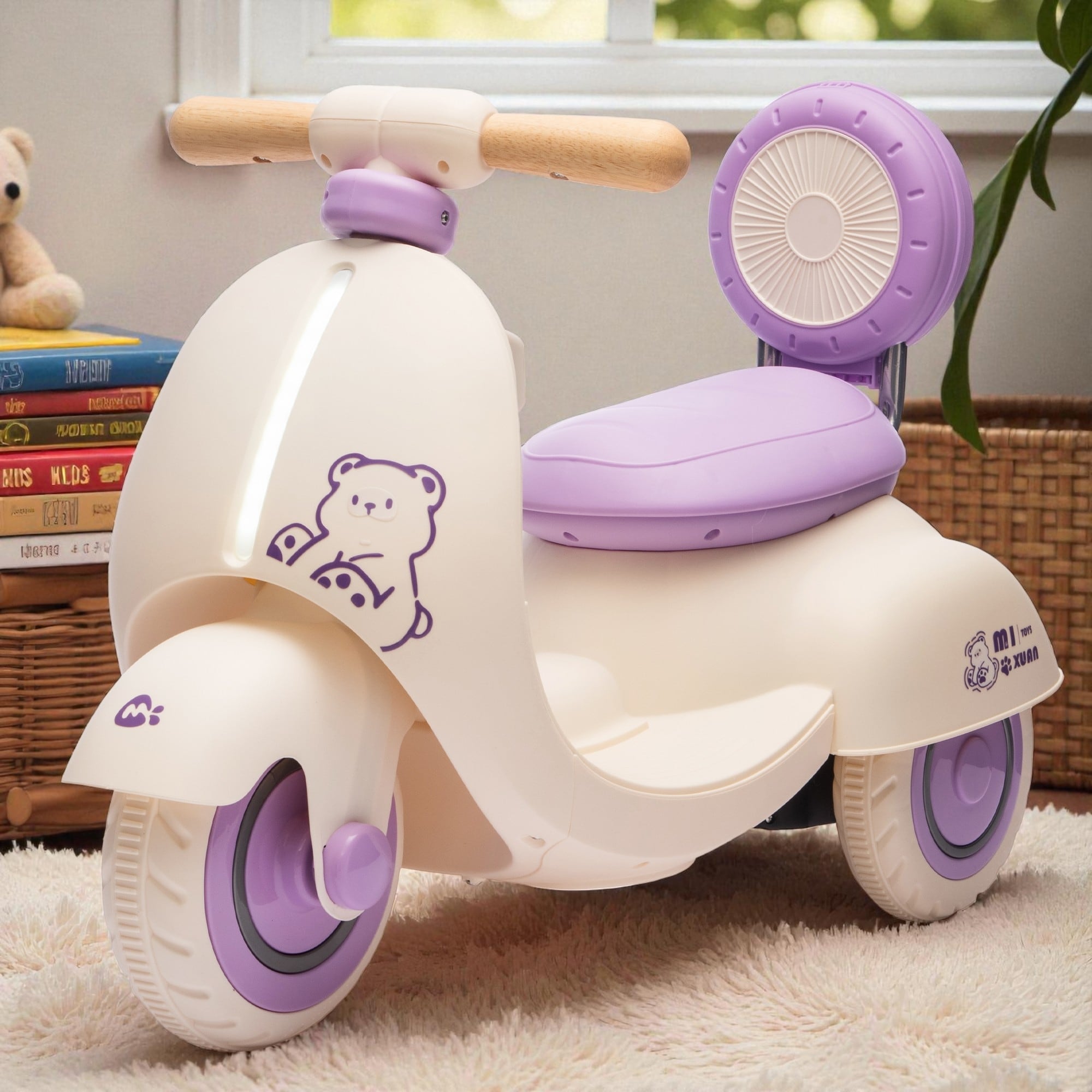 12V Kids Ride On Electric Motorcycle Scooter with Parent Remote 3 Wheel Design Wooden Handle for Toddlers 1-3