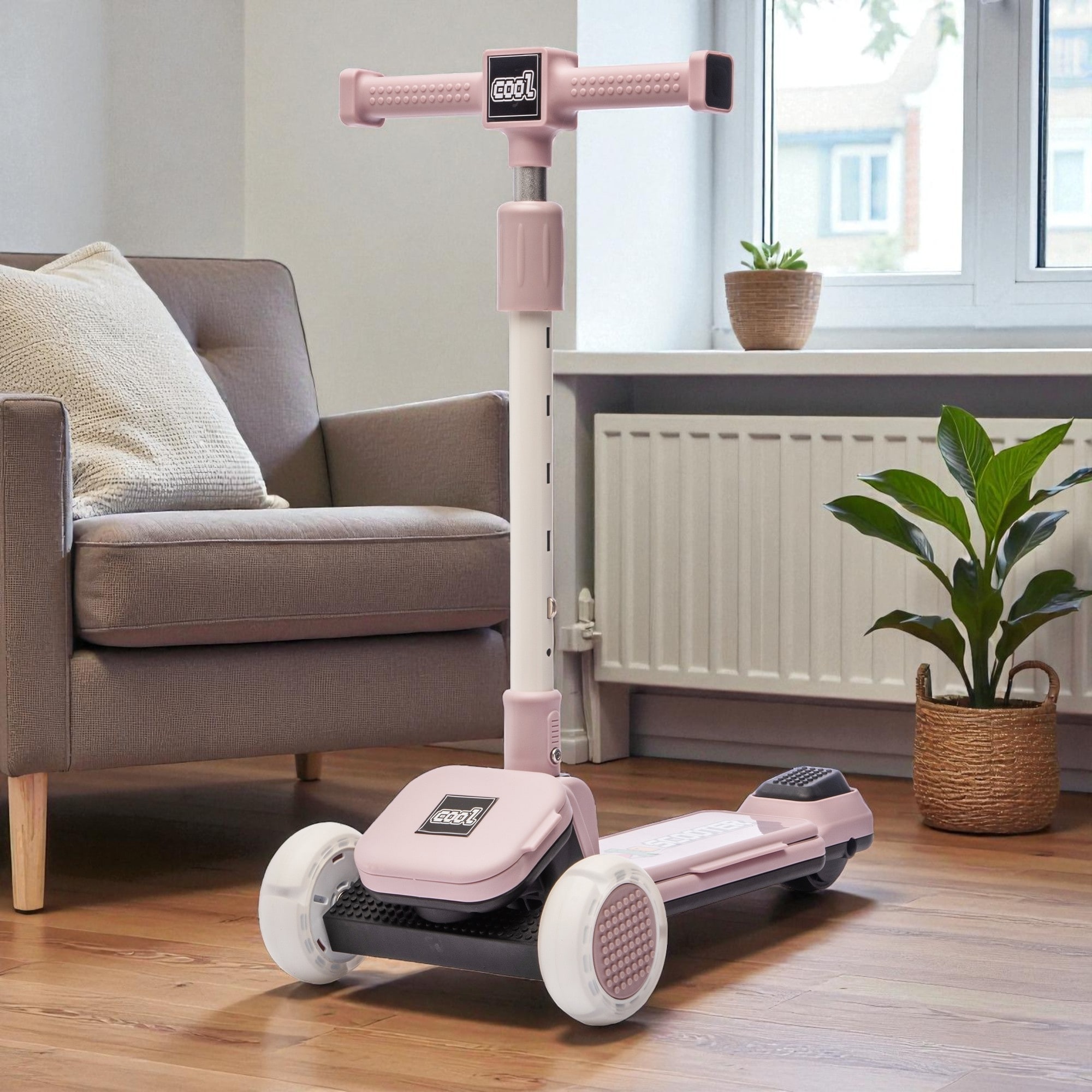 Kids 3 Wheel Ride On Scooter with Buildable Blocks PU Flash Wheels Folding Design Adjustable Handlebar for Ages 3-9