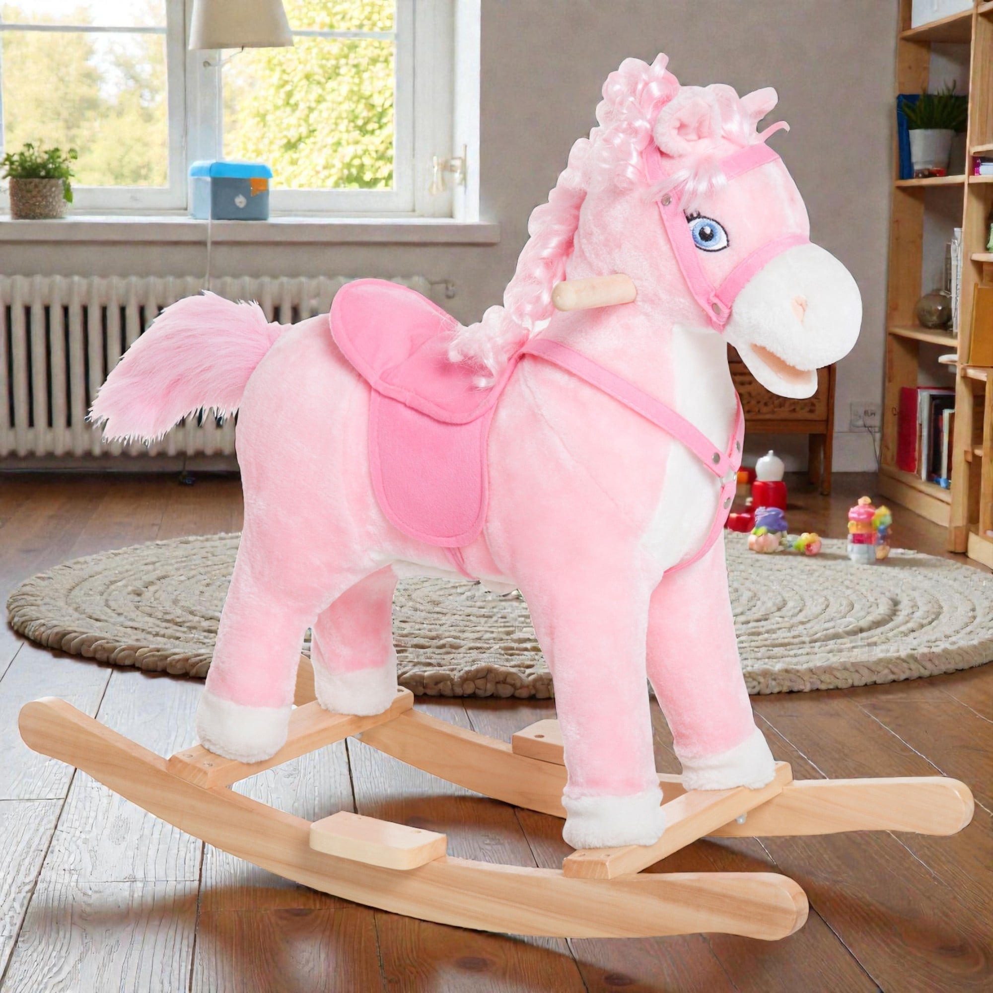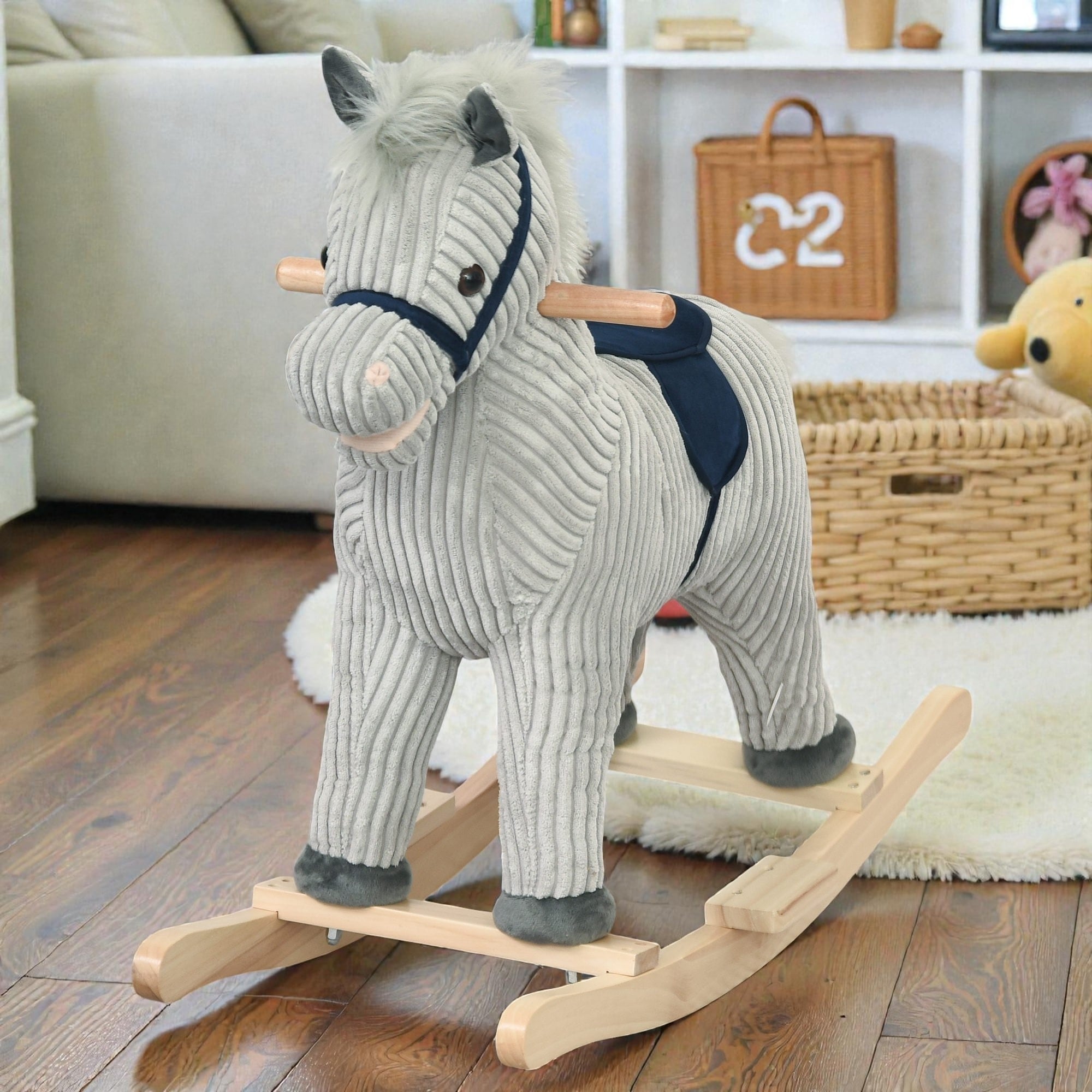 Kids Rocking Horse Ride On Toy with Sound Plush Wooden Rocker for Toddlers Ages 3-5 Indoor Play Gift
