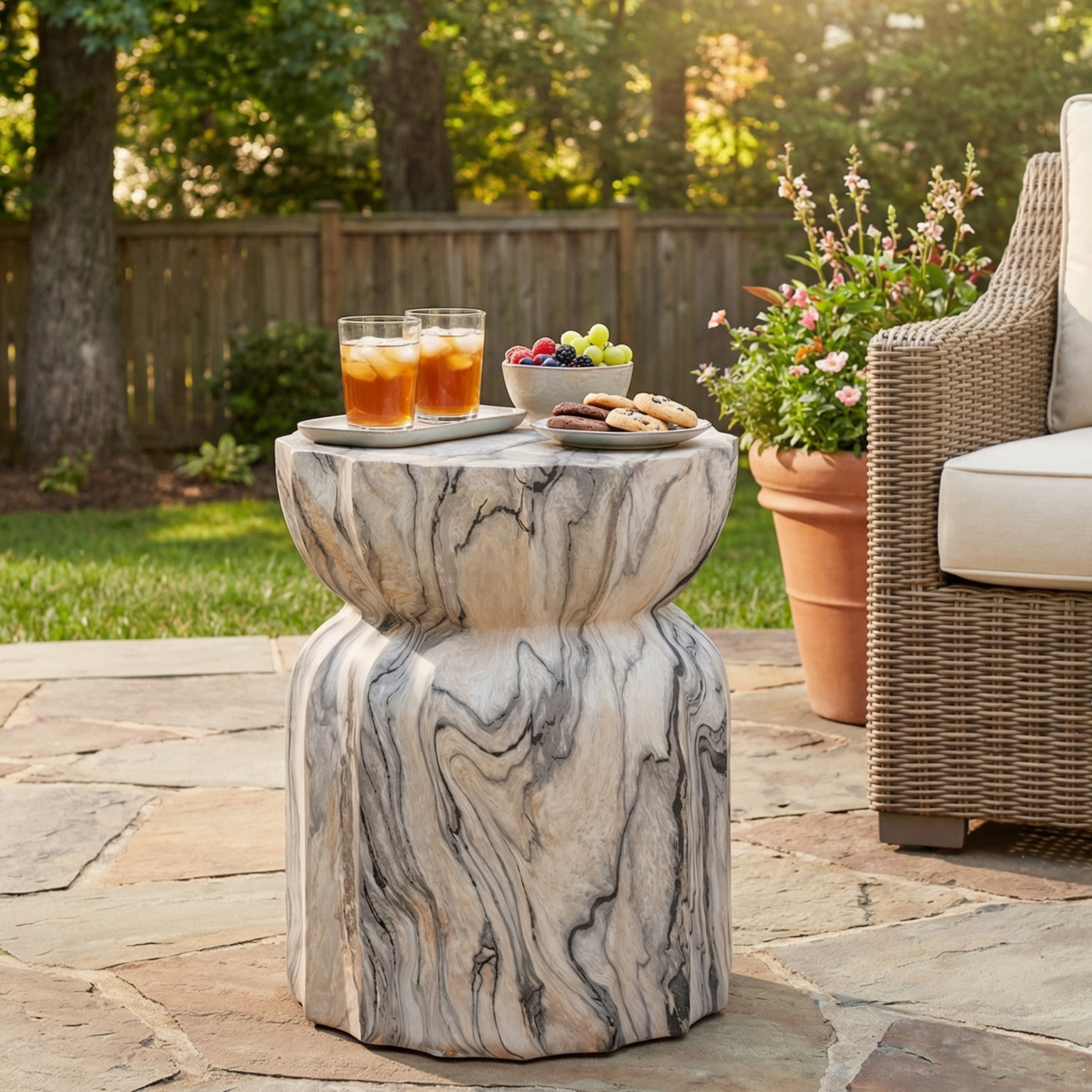 Christopher Knight Home - Modern Outdoor Lightweight Concrete Accent Side Table with Fluted Sculptural Hourglass Design