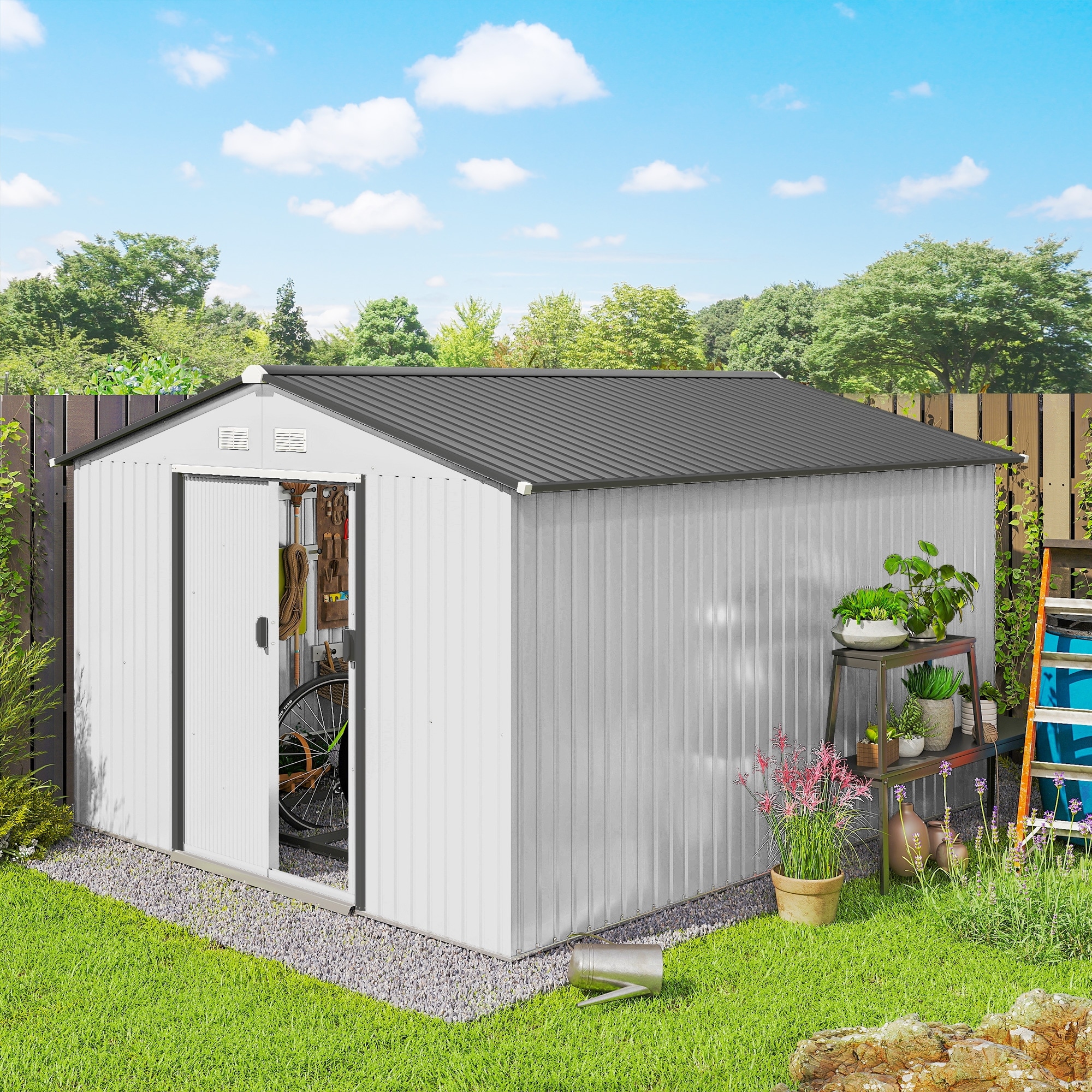Silver & White Galvanized Steel Garden Storage Shed Extra-Large Outdoor Shed - 126.75" W x 109" D x 75.5" H