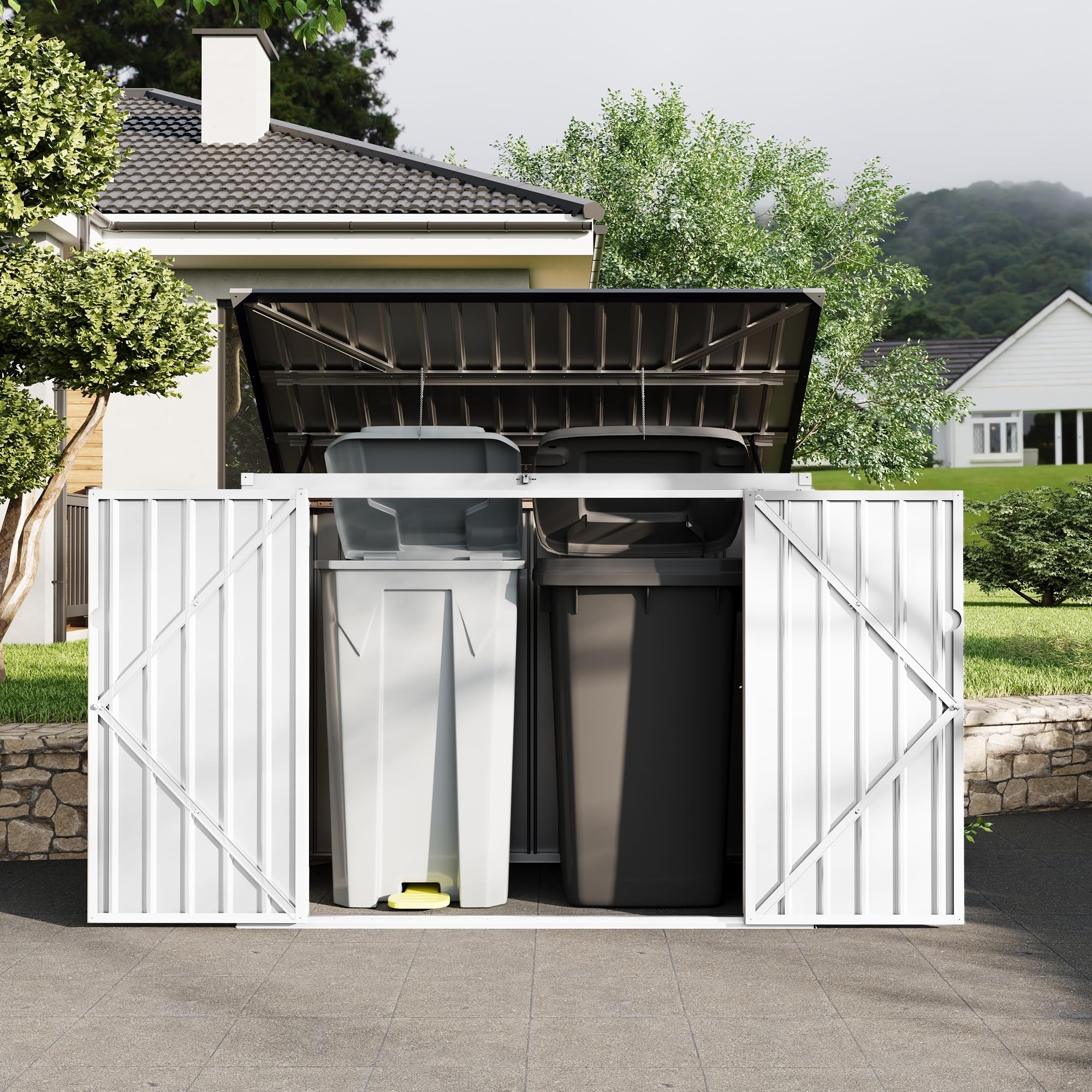 3x6ft Outdoor Storage Shed for 2 Trash Cans, Weather-Resistant Metal Shed with Chain-Lifting Lid & Lockable Door