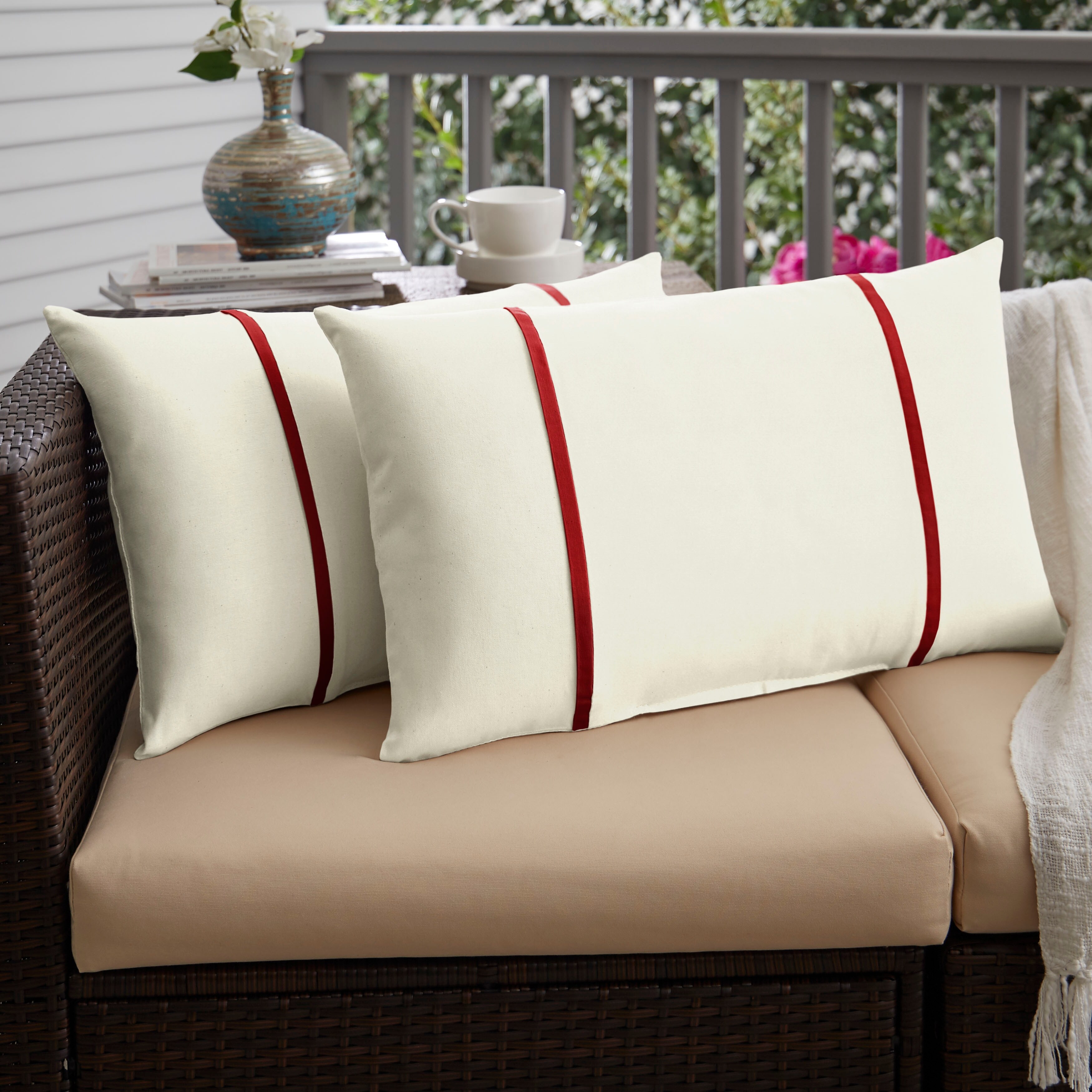 Sunbrella Canvas Natural / Rust Flange Indoor/ Outdoor Pillows, Set of 2