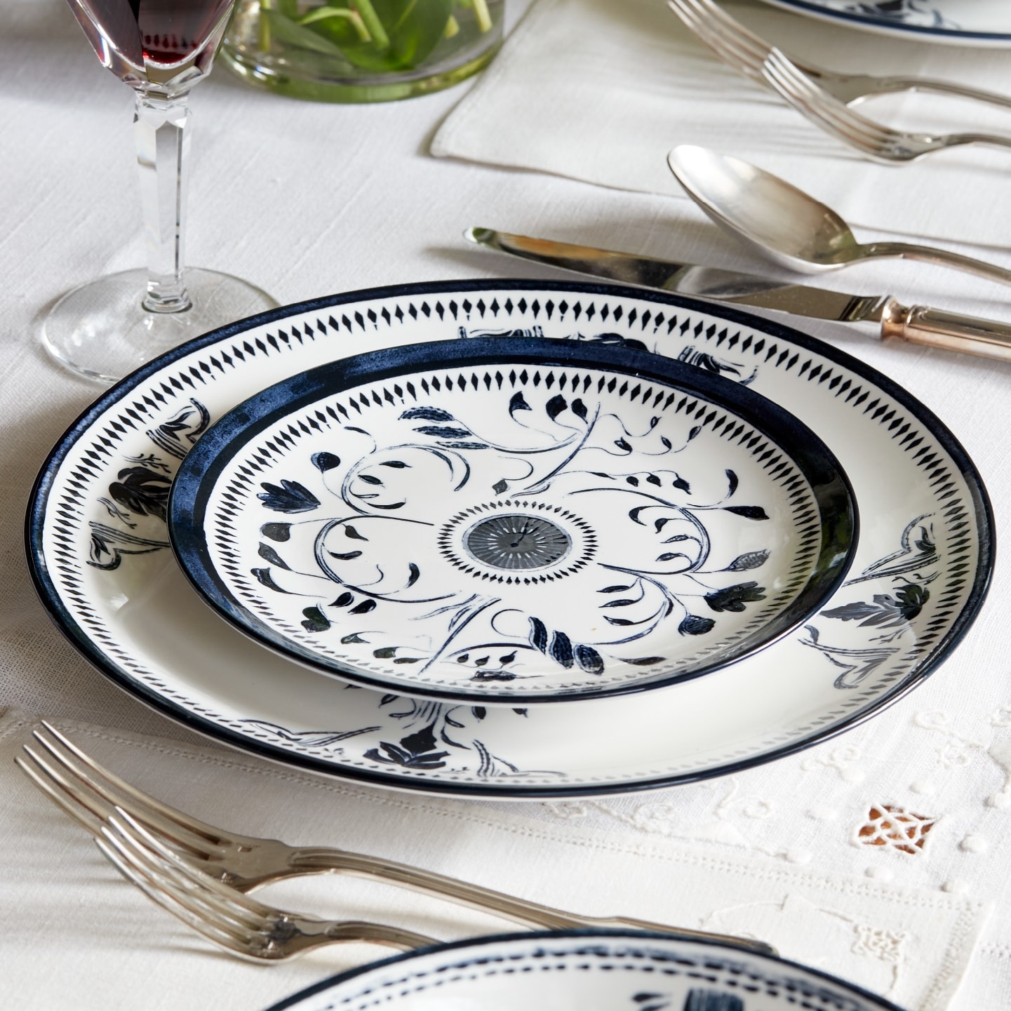 Set of 4 Plates with Scattered Black Design