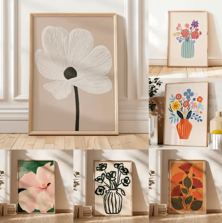 Minimalist Beige Floral Line Canvas Poster Modern Botanical Wall Art (Frameless) tl2374 30x40cm No Frame
