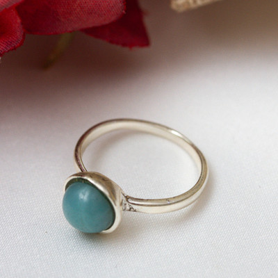 Drop in the Rain,'Sterling Silver Band Ring with Teardrop Accent from Bali'