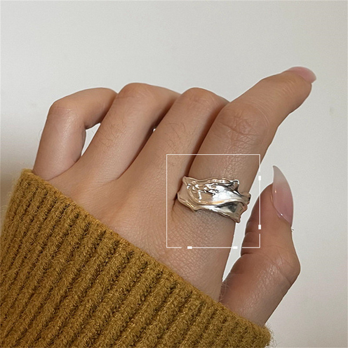 Silver Irregular Surface Finger Rings: Creative Geometric Punk Opening Jewelry For Women RI23Y0212 2