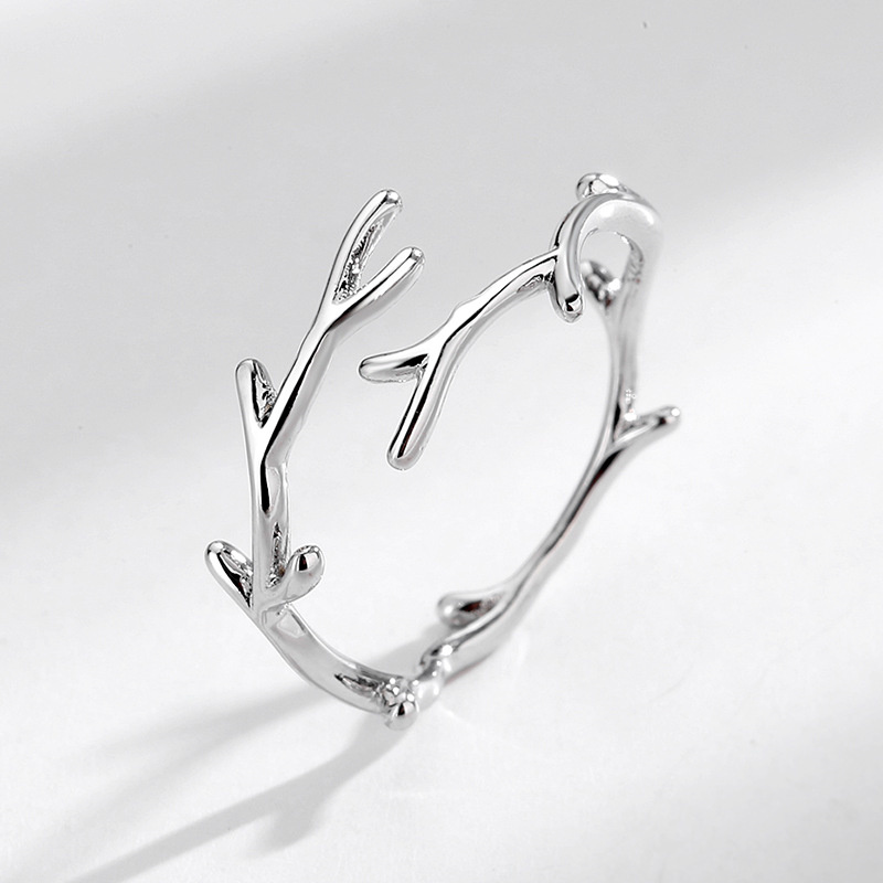 Silver Branch Leaf Adjustable Ring Trendy Finger Jewelry For Women & Girls R1142