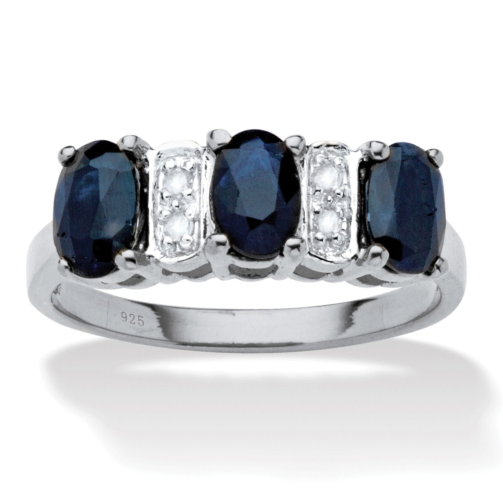 Women's 1.86 TCW Oval-Cut Genuine Blue Sapphire & Diamond Platinum Plated Silver Ring by PalmBeach Jewelry in Blue (Size 5)