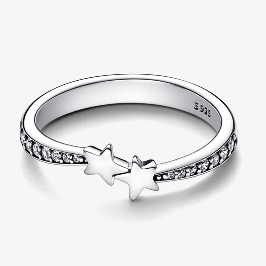 European S925 Sterling Silver Star Ring With Sparkling Clear Pave AAA CZ Perfect Women's Jewelry For Birthday, Wedding Star Ring 7