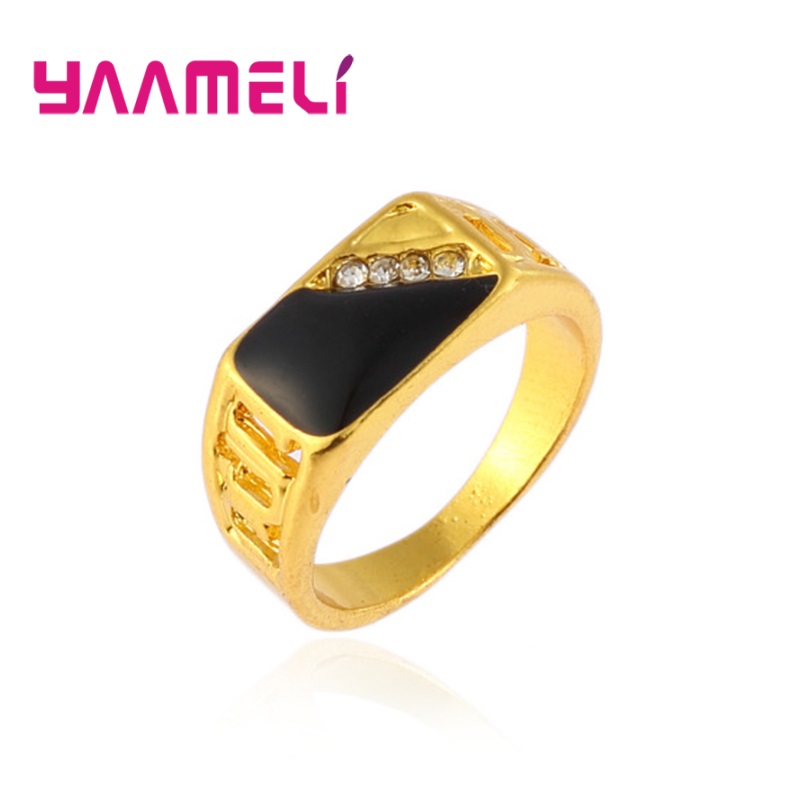 925 Sterling Silver Plated Men's Wide Band Ring With Black & White Rhinestone Square Unique Statement Hip Hop Jewelry 8 gold