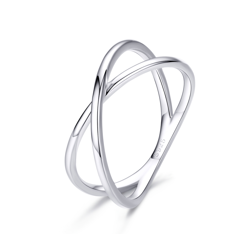 Stunning BAMOER 14K Gold Plated X Ring: Minimalist 925 Sterling Silver Cross Ring, Perfect Promise Jewelry For Women (SC 6 silver