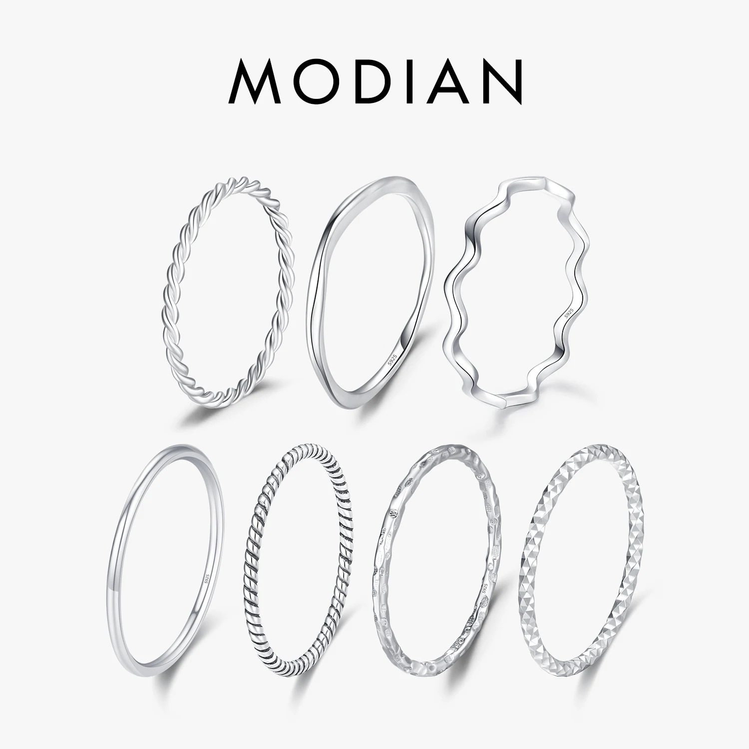 MODIAN 925 Sterling Silver Stackable Rings: Simple Wave & Geometric Design | Exquisite Women's Party Jewelry JT1200S 7