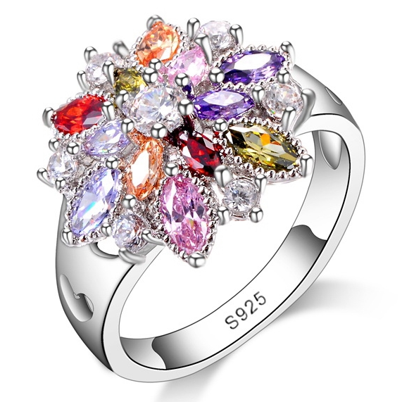 Colourful Cubic Zirconia Flower Sterling Silver Ring: Cute Fashion Jewelry For Women & Girls, Perfect For Party & Engage 9