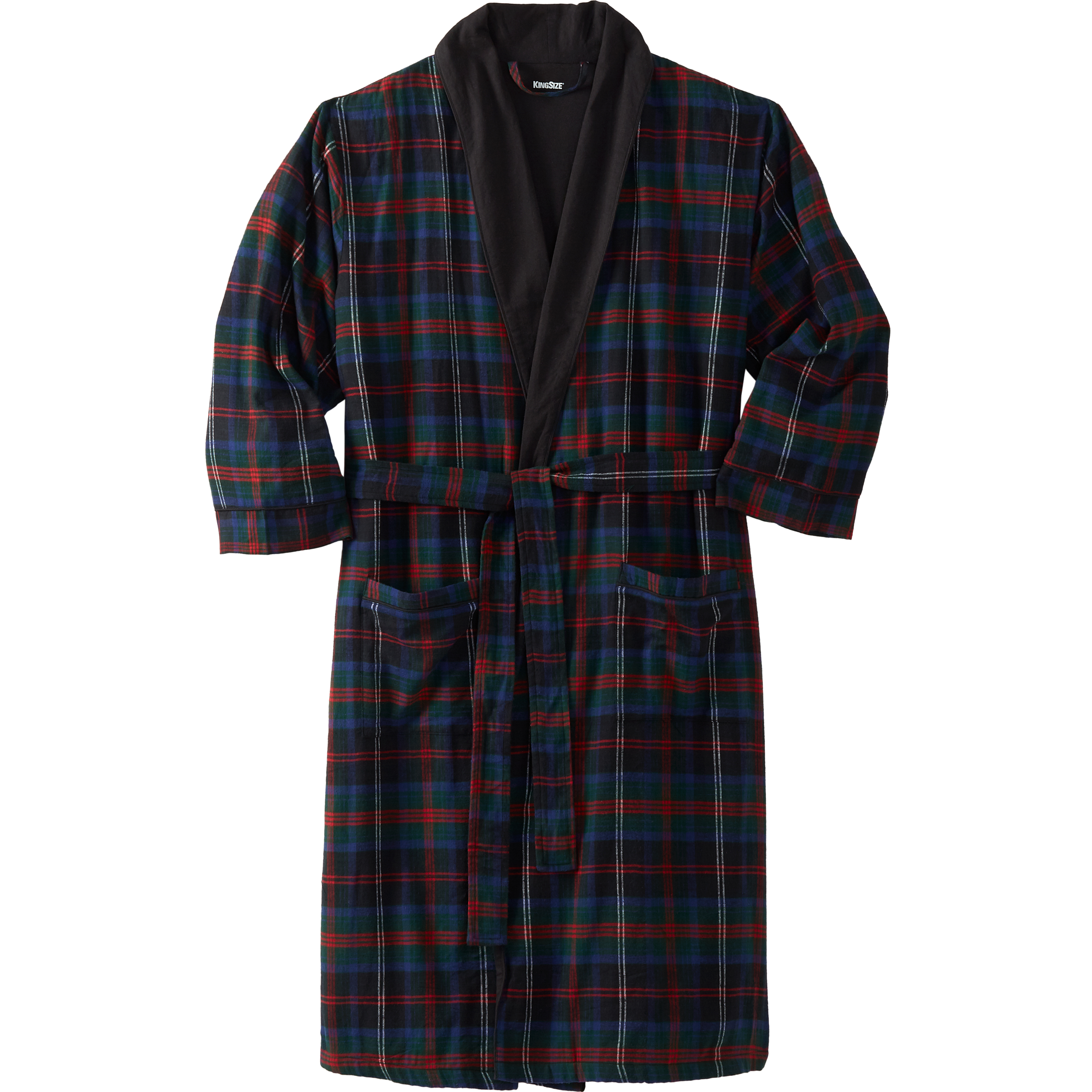 Men's Big & Tall Jersey-Lined Flannel Robe by KingSize in Multi Plaid (Size 2XL/3XL)