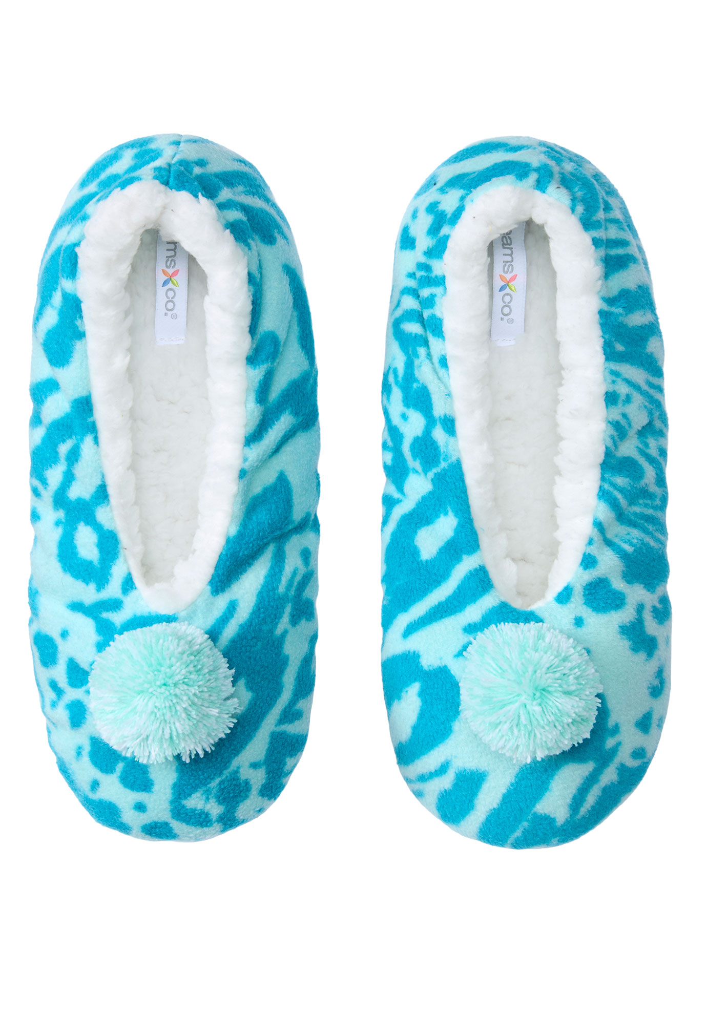 Women's Dreams & Co. ® Pom Pom Slipper by Dreams & Co. in Pale Ocean Animal (Size XL(11-12))
