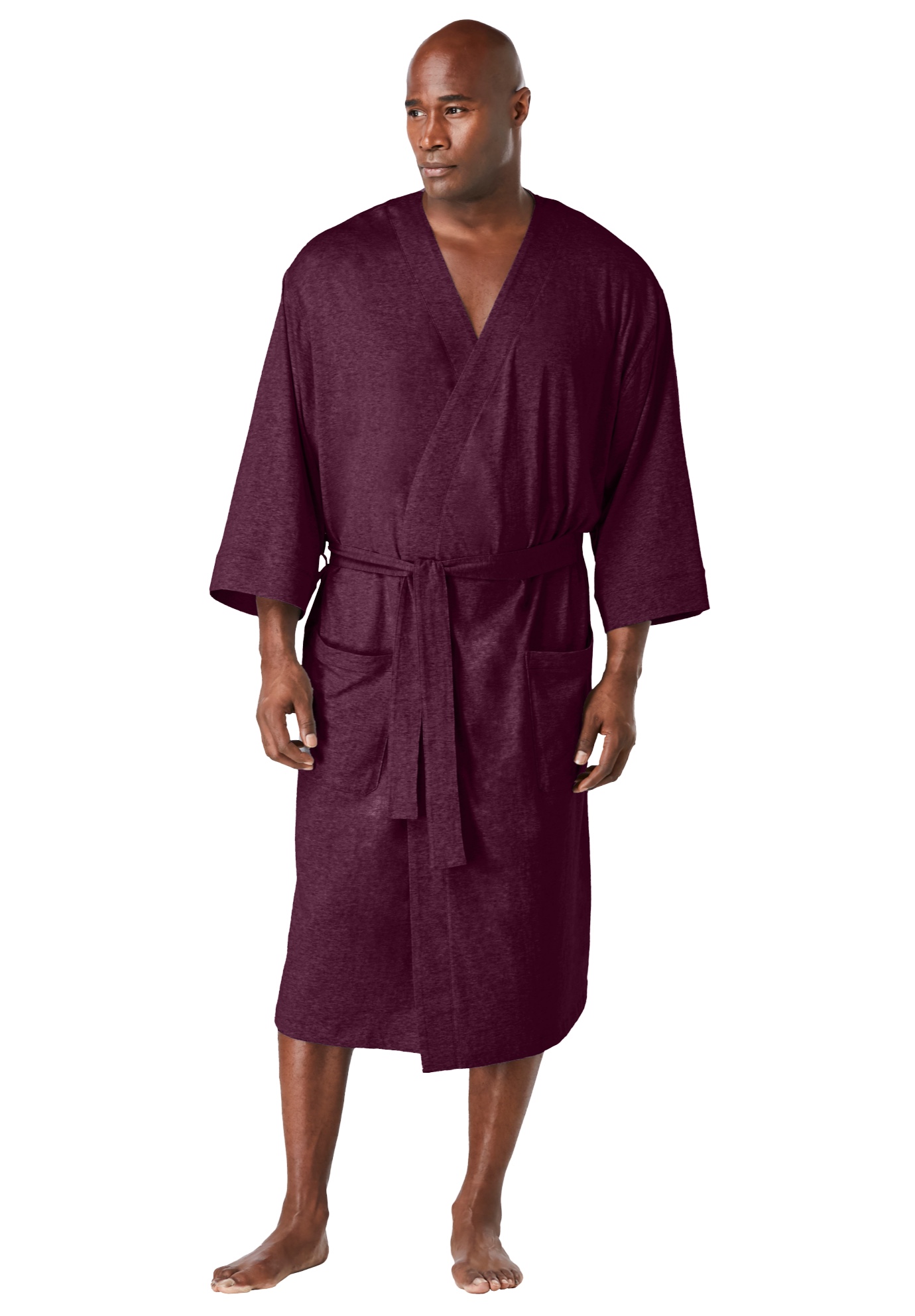 Men's Big & Tall Cotton Jersey Robe by KingSize in Heather Deep Burgundy (Size 7XL/8XL)