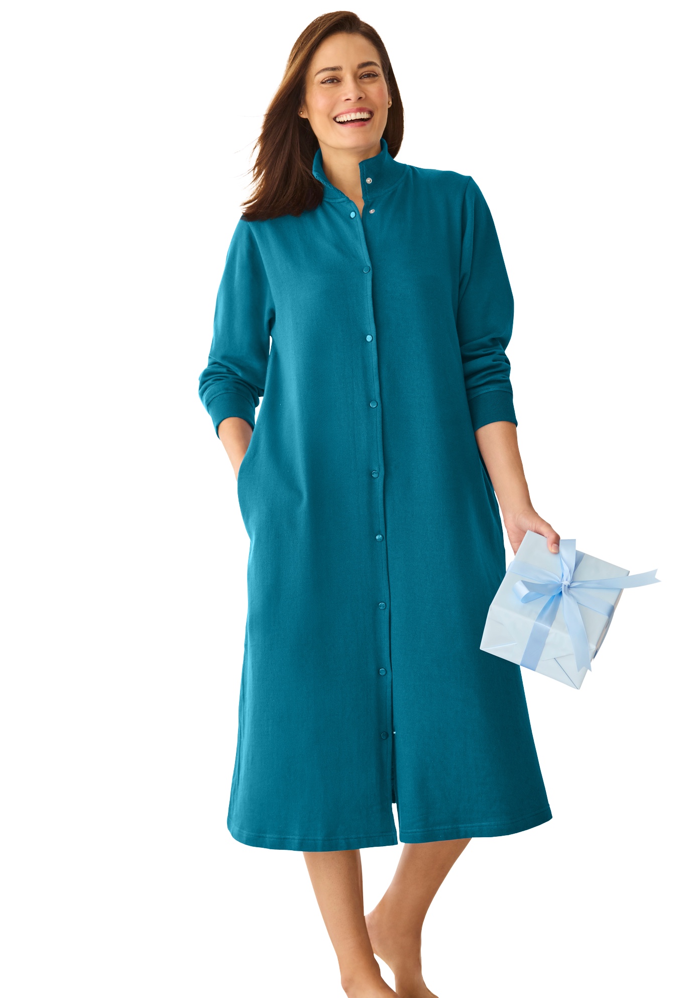 Plus Size Women's Long French Terry Zip-Front Robe by Dreams & Co. in Deep Teal (Size 3X)