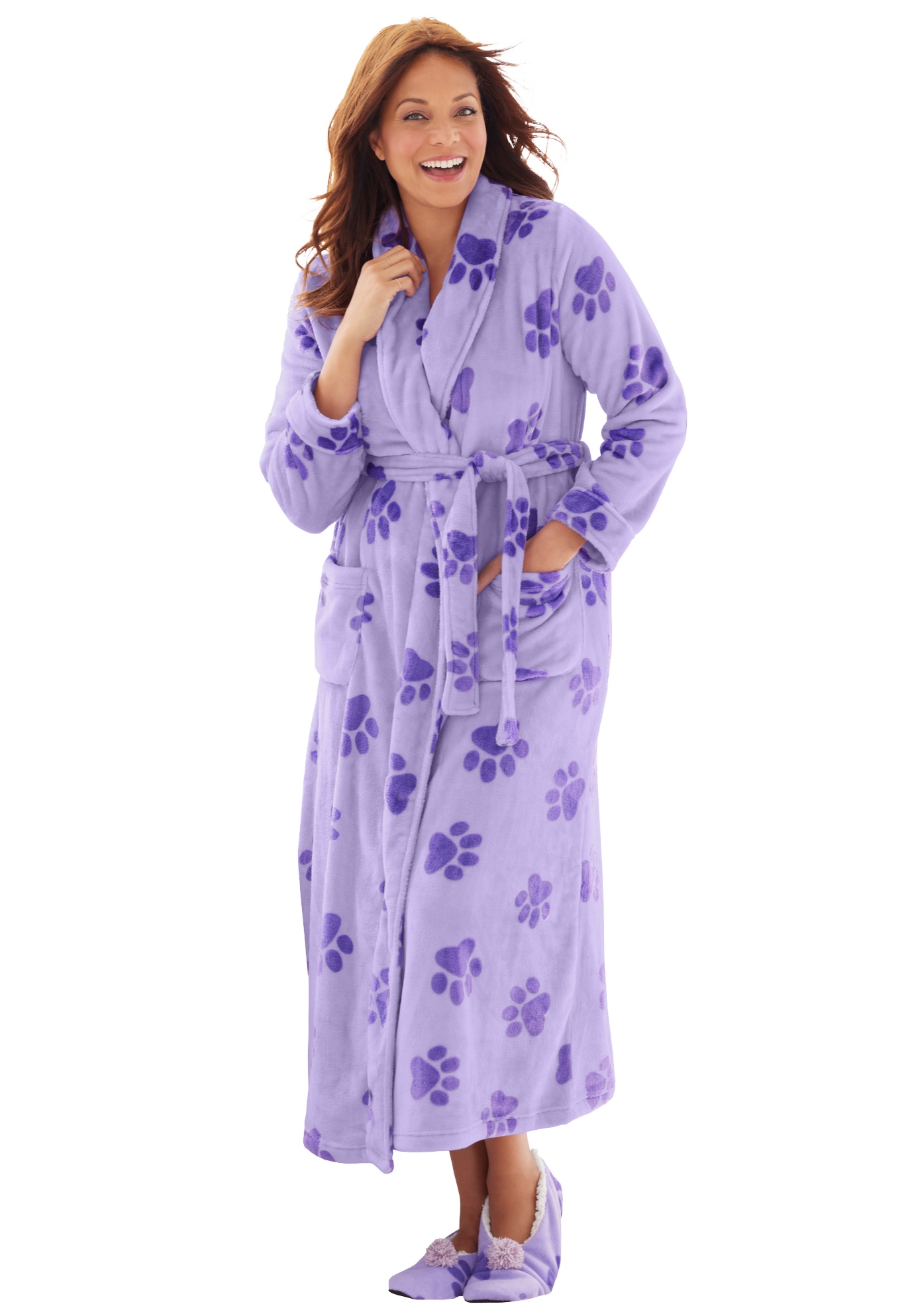 Plus Size Women's Plush Wrap Robe by Dreams & Co. in Soft Iris Paws (Size 34/36)