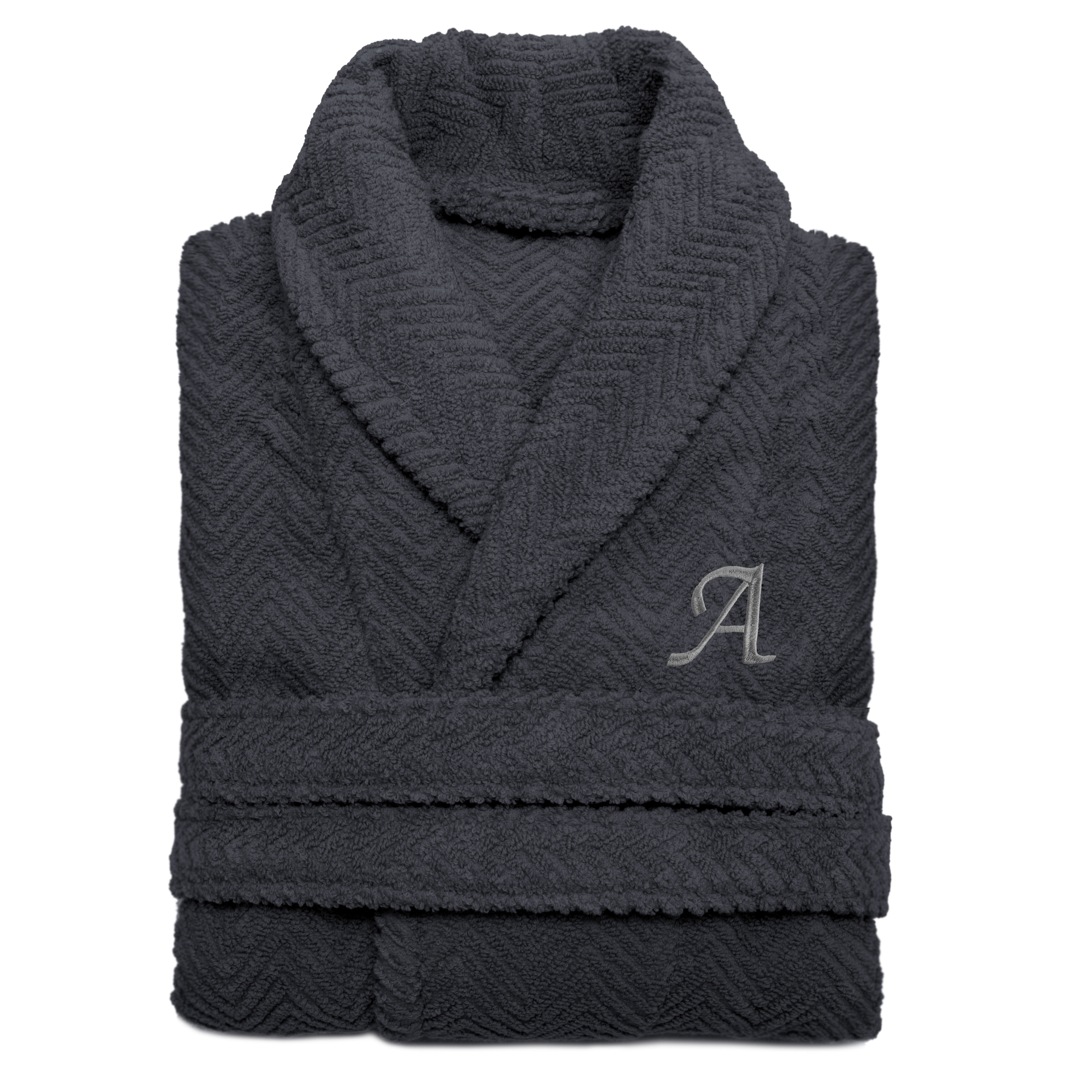 Authentic Hotel and Spa Charcoal Grey Monogrammed Herringbone Turkish Cotton Bath Robe