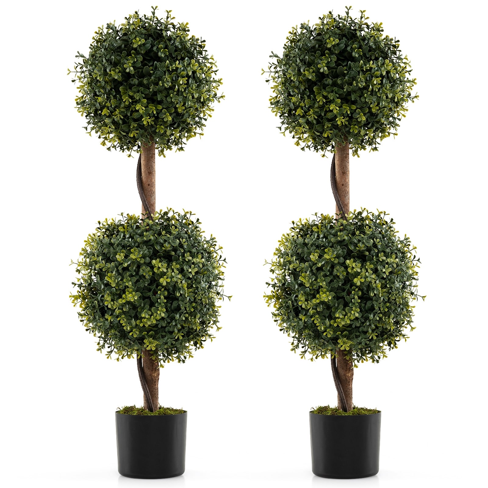 Gymax Set of 2 Artificial Double Topiary Ball Trees 3 FT Faux Boxwood