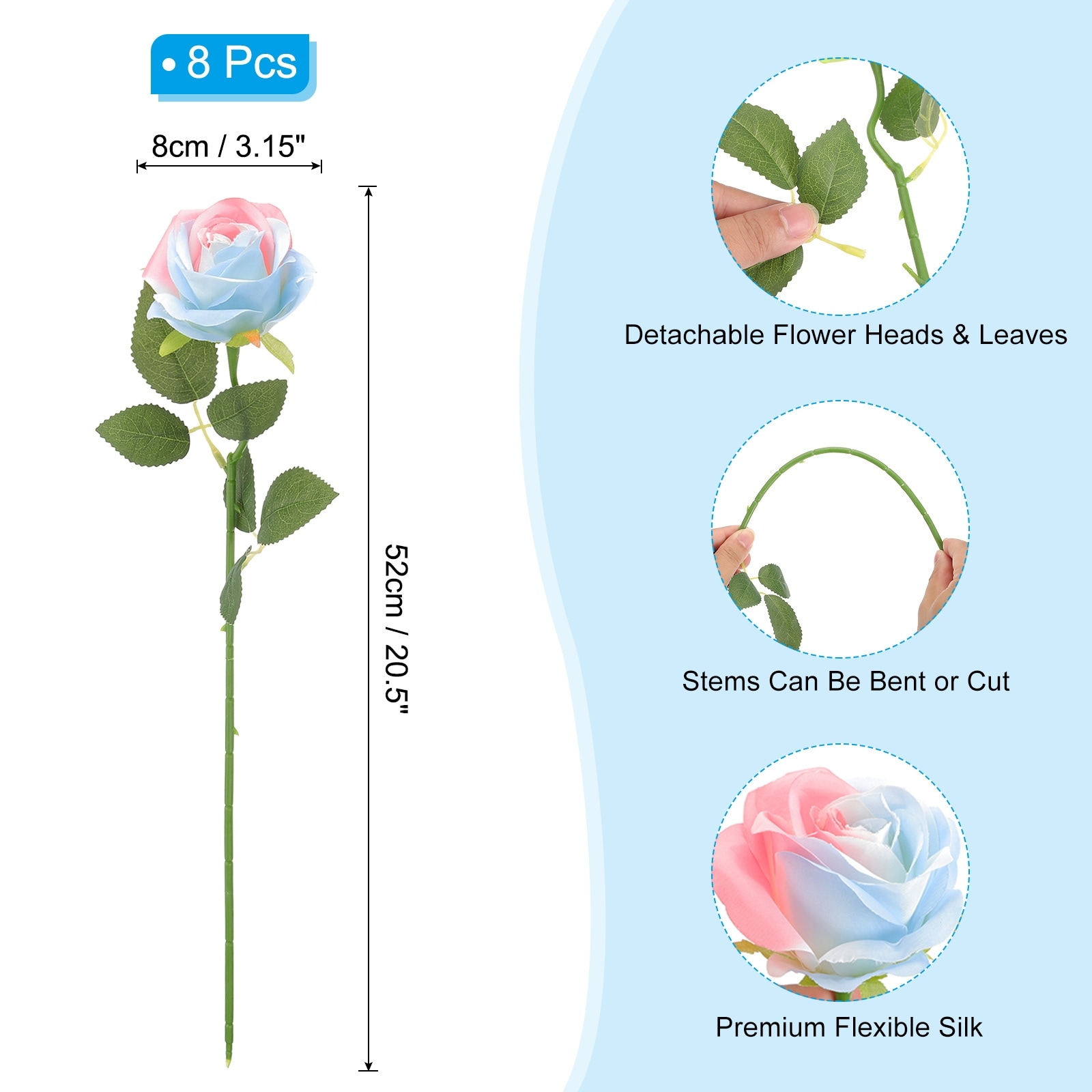 Fake Roses, Roses Artificial Flowers Artificial Roses Silk Roses Silk Roses with Long Stems Real Look Real Touch Bouquet - 52cm