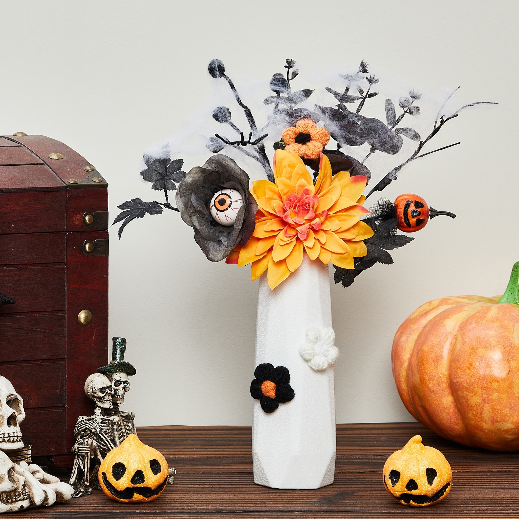 2 Bottles Halloween Decorative Centerpiece Bottle Ornaments In Black and Orange Made of Gauze, Plastic, Wire, and Yarn