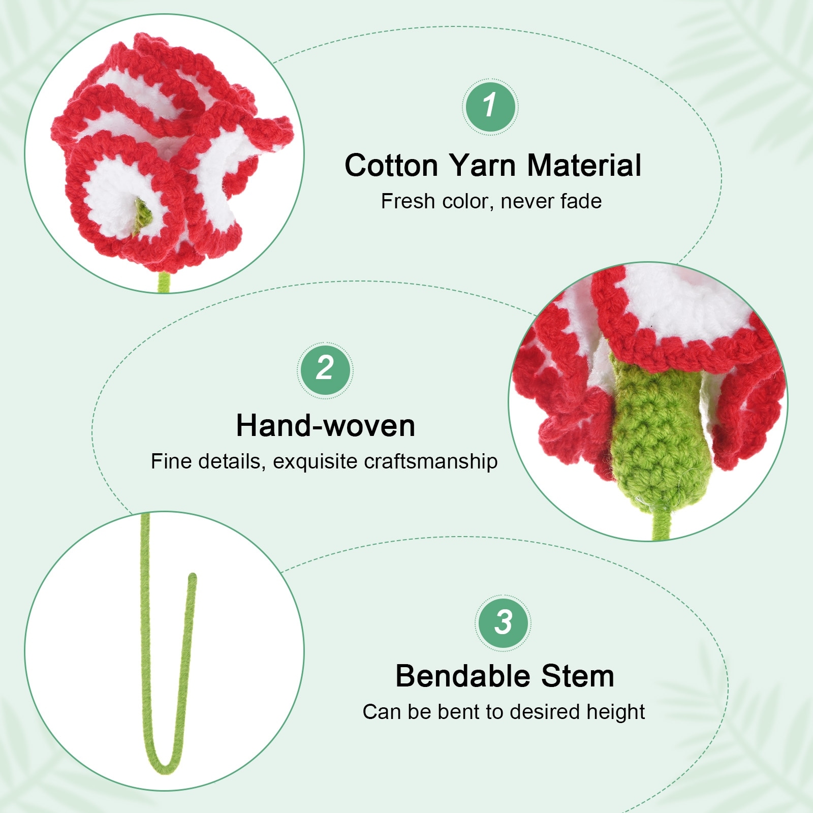 Crochet Flowers Knitted Artificial Wool Carnation Handmade Knitted Flowers