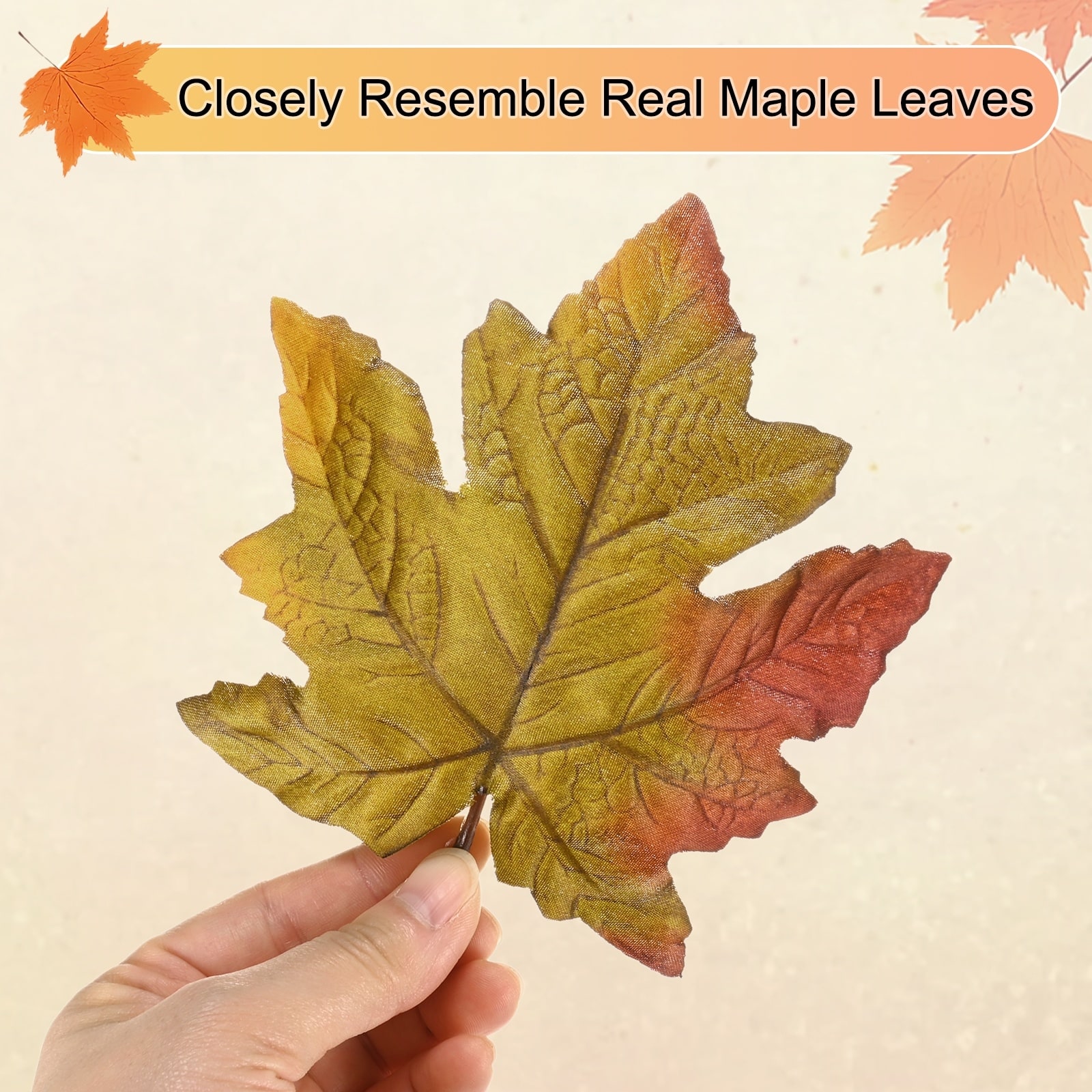 Artificial Maple Leaves, Fake Fall Leaves Faux Autumn Leaves for Thanksgiving/ Wedding - 14x14cm