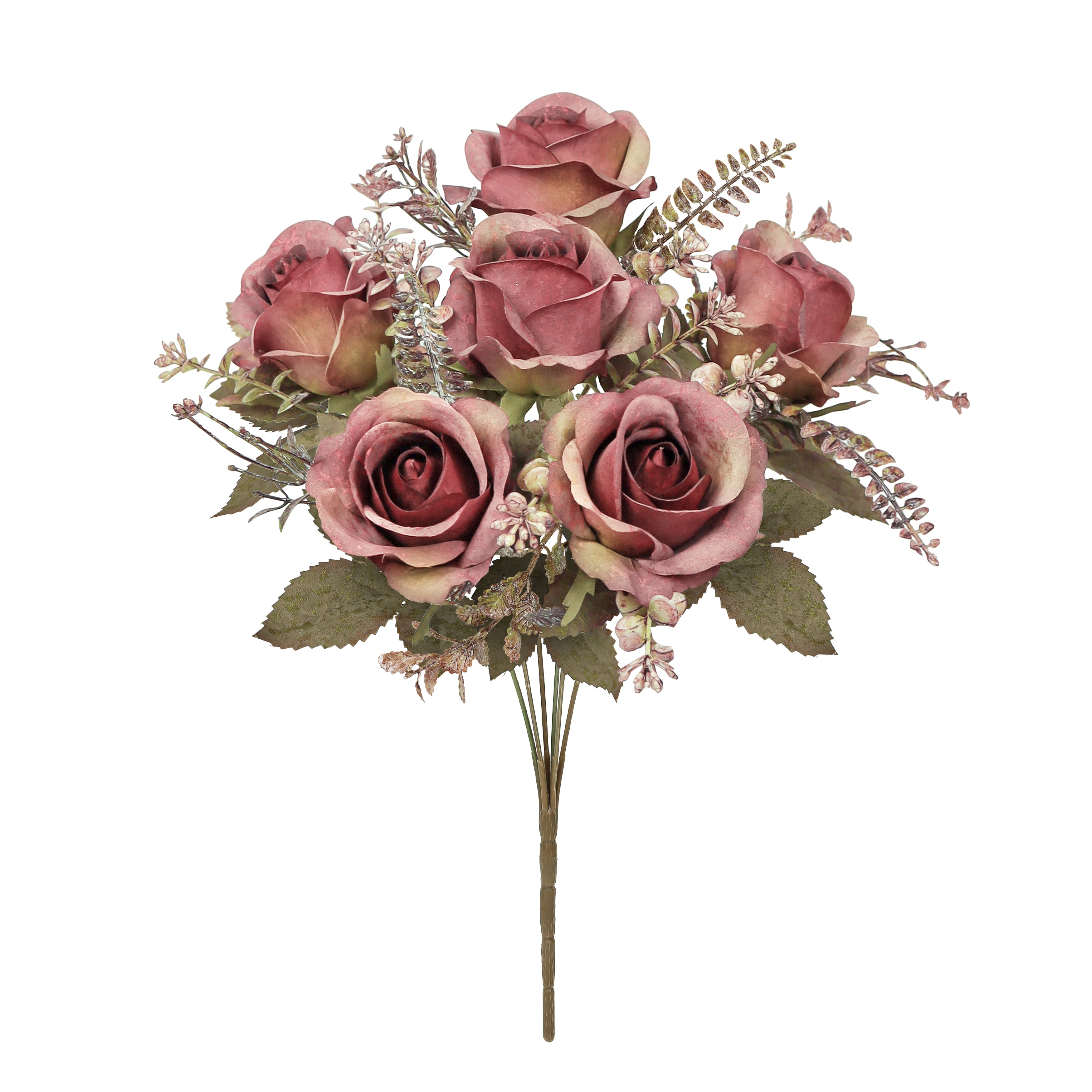 Set of 2 Dusty Burgundy Artificial Rose Flower Stem Bush Bouquet 15in - 15" L x 8" W x 8" DP