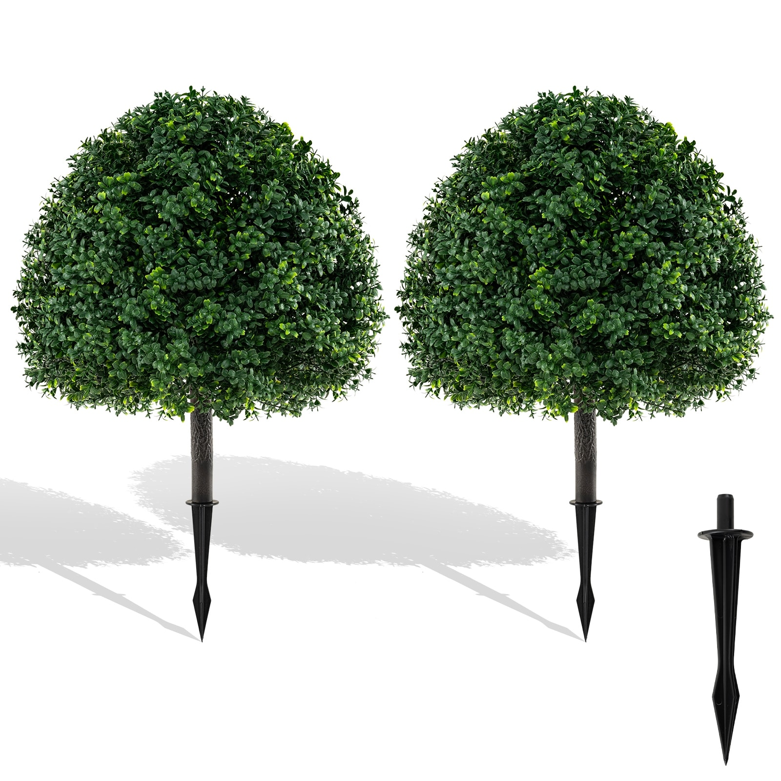 28" Artificial Boxwood Topiary Ball Tree Set of 2 with Ground Spike for Indoor Outdoor Decor - 28"H