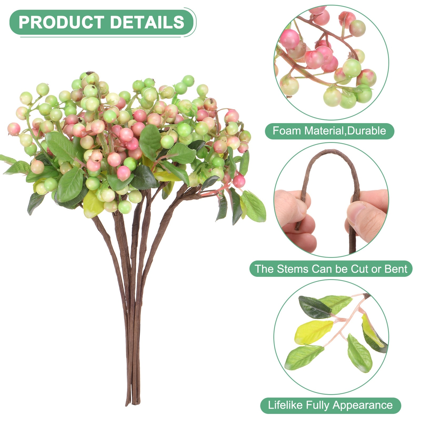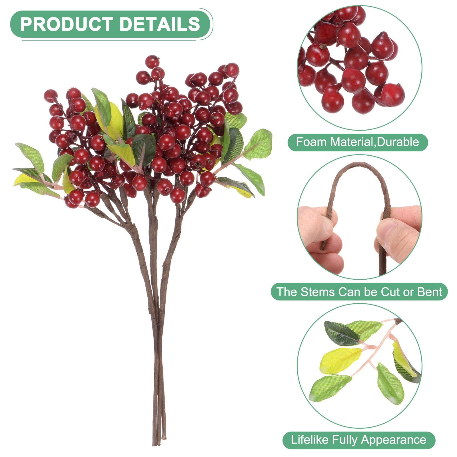 Artificial Berry, Faux Holly Berry Foam Faux Frosted Berries with Stems for Home/Wedding/Christmas/DIY/Party/Garden/Office