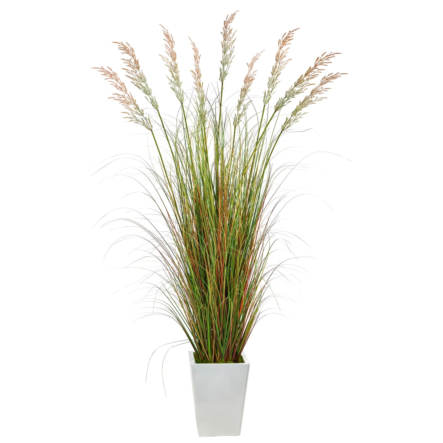 Artificial Grass Plant 74In Indoor Outdoor Decor White Planter - Green