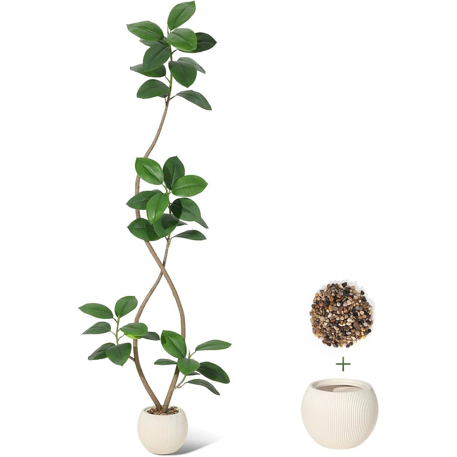 Artificial Plant Faux Fiddle Leaf Fig Tree with Off White Sphere Resin Planter