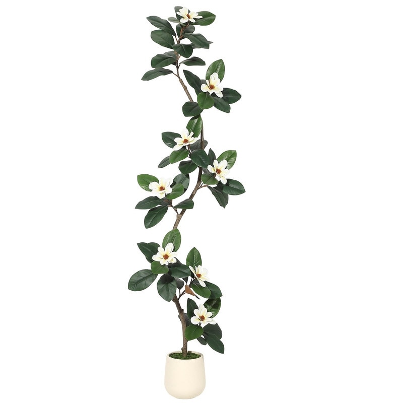 Artificial Magnolia Tree with Pot, Lifelike Indoor Floor Plant Decor