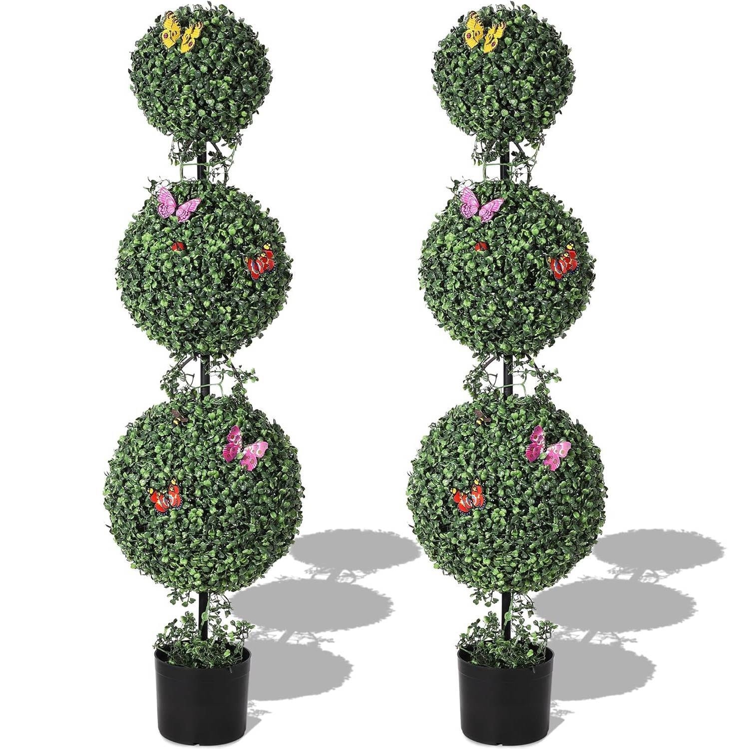 2 Pack Artificial Three Ball Topiary Trees Plants for Home Decor