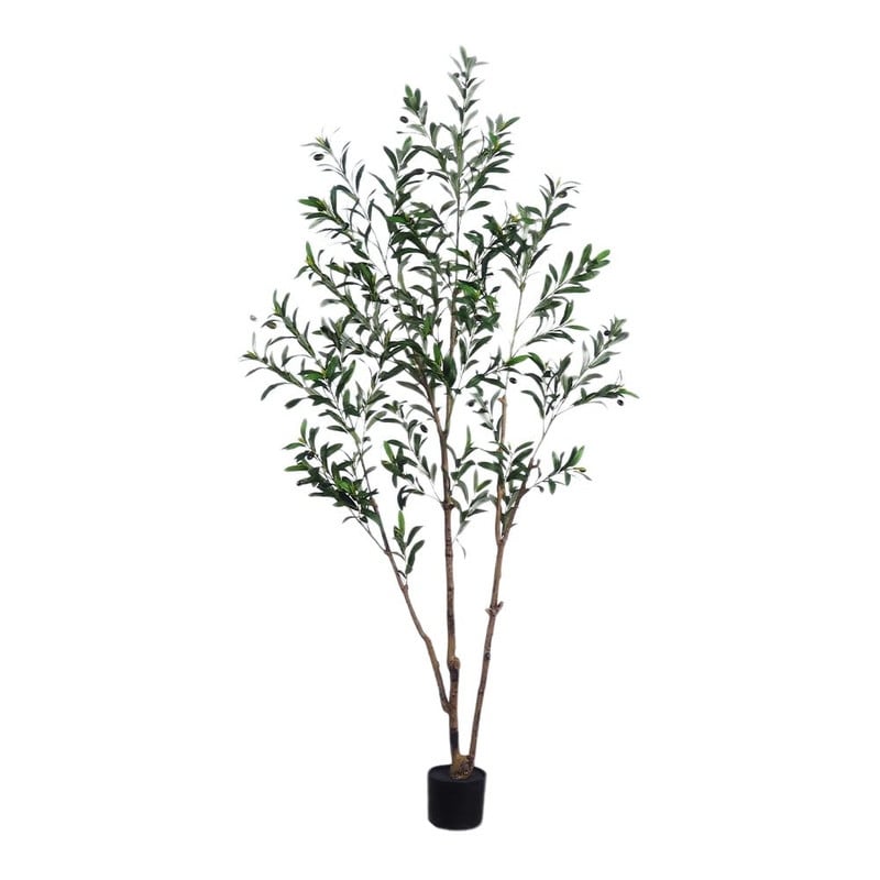 Artificial Olive Tree in Planter, Real Wood Trunk, Lifelike for Home