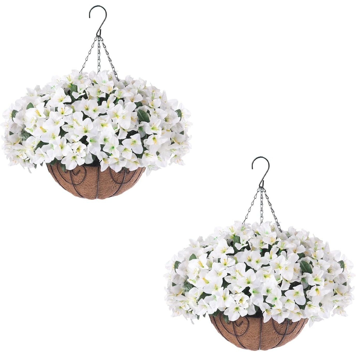 2 Set Artificial Outdoor Bougainvillea Flowers with Brown Basket, Artificial Hanging Flowers Plant